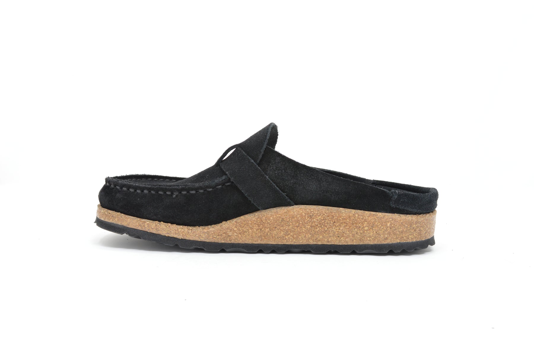 The BIRKENSTOCK Buckley is a semi-open moccasin-style clog that’s instantly recognizable as an authentic BIRKENSTOCK original thanks to its exposed cork footbed. The upper is made from soft suede leather.