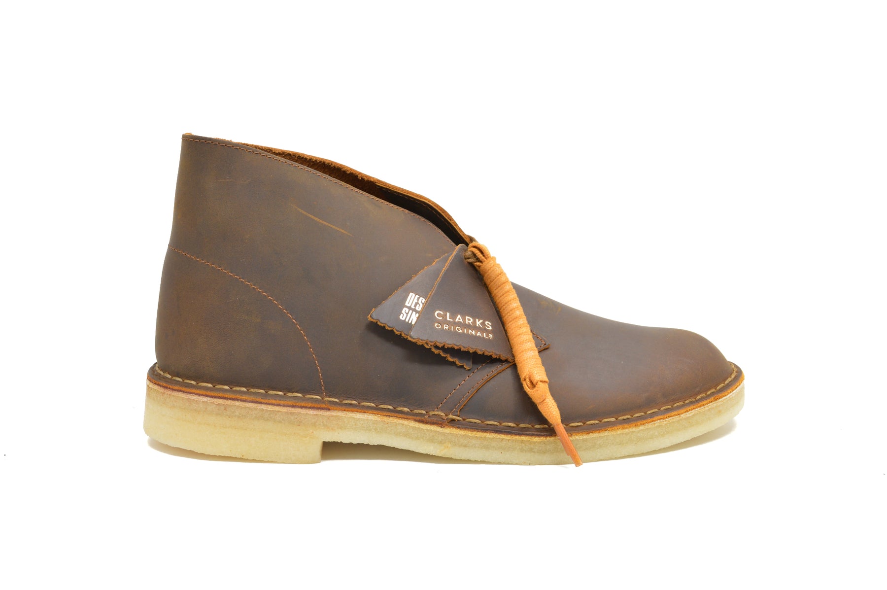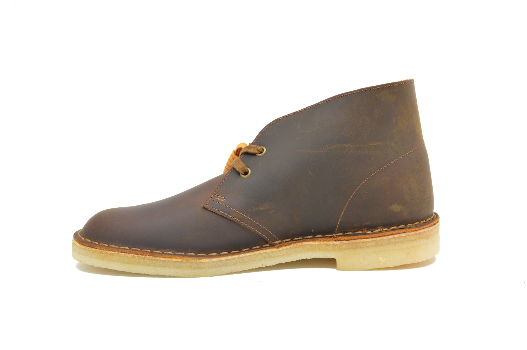 Cultural cachet and design DNA: no shoe is quite like the Clarks Originals Desert Boot. Nathan Clark’s 1950 design was inspired by a rough boot from Cairo’s Old Bazaar, and its minimal, progressive style sparked a worldwide footwear revolution – worn by beatniks, mods, Britpop bands, and Jamaican rude boys, from Paris to Kingston, Tokyo to London. Every design detail today remains true to that first pioneering pair – here, the boot’s crafted, clean lines are enhanced with premium beeswax leather, finished with an unfussy lace fastening. The authentic, sustainably sourced crepe sole completes this distinctive silhouette. Instantly recognizable, forever iconic. A true original.