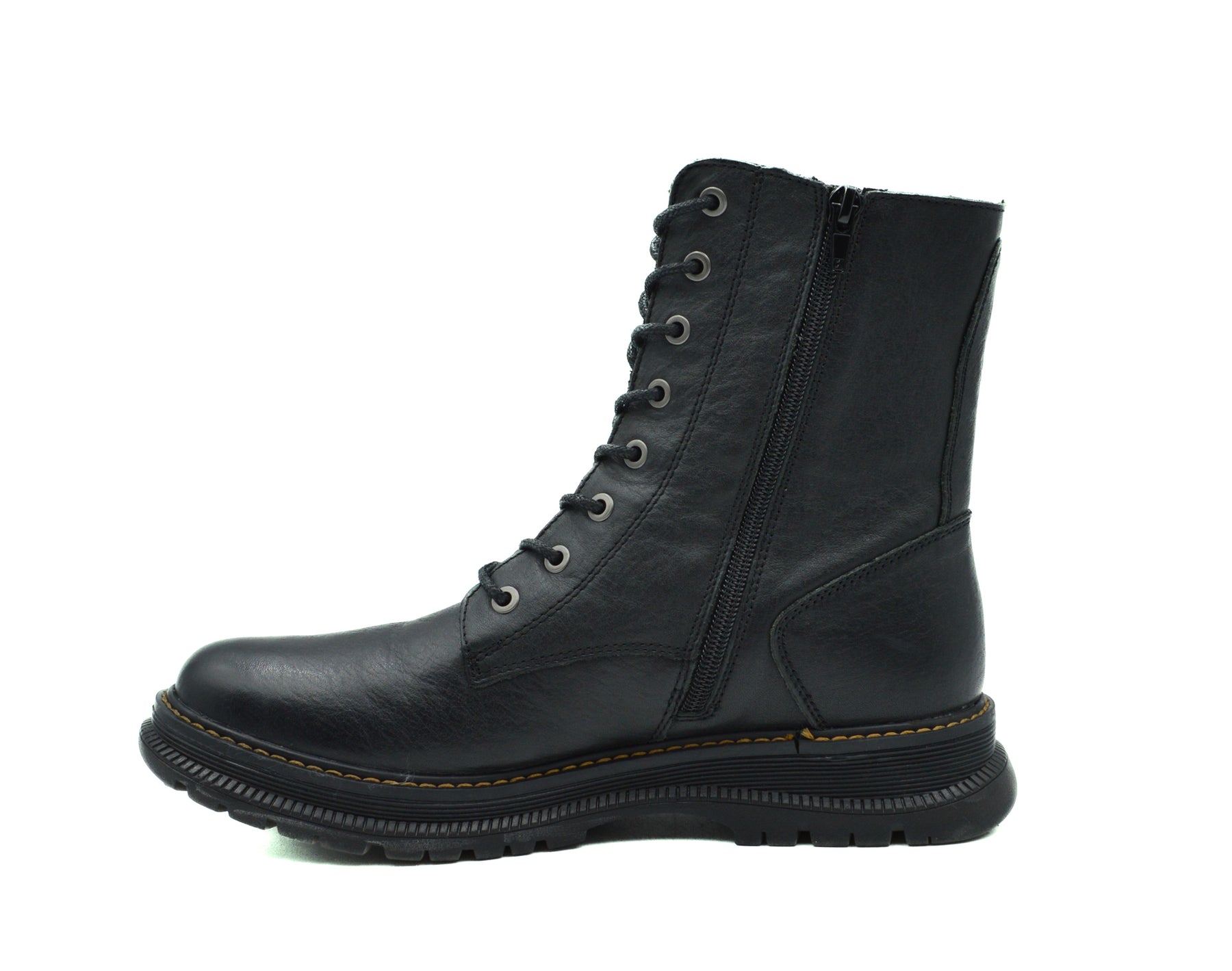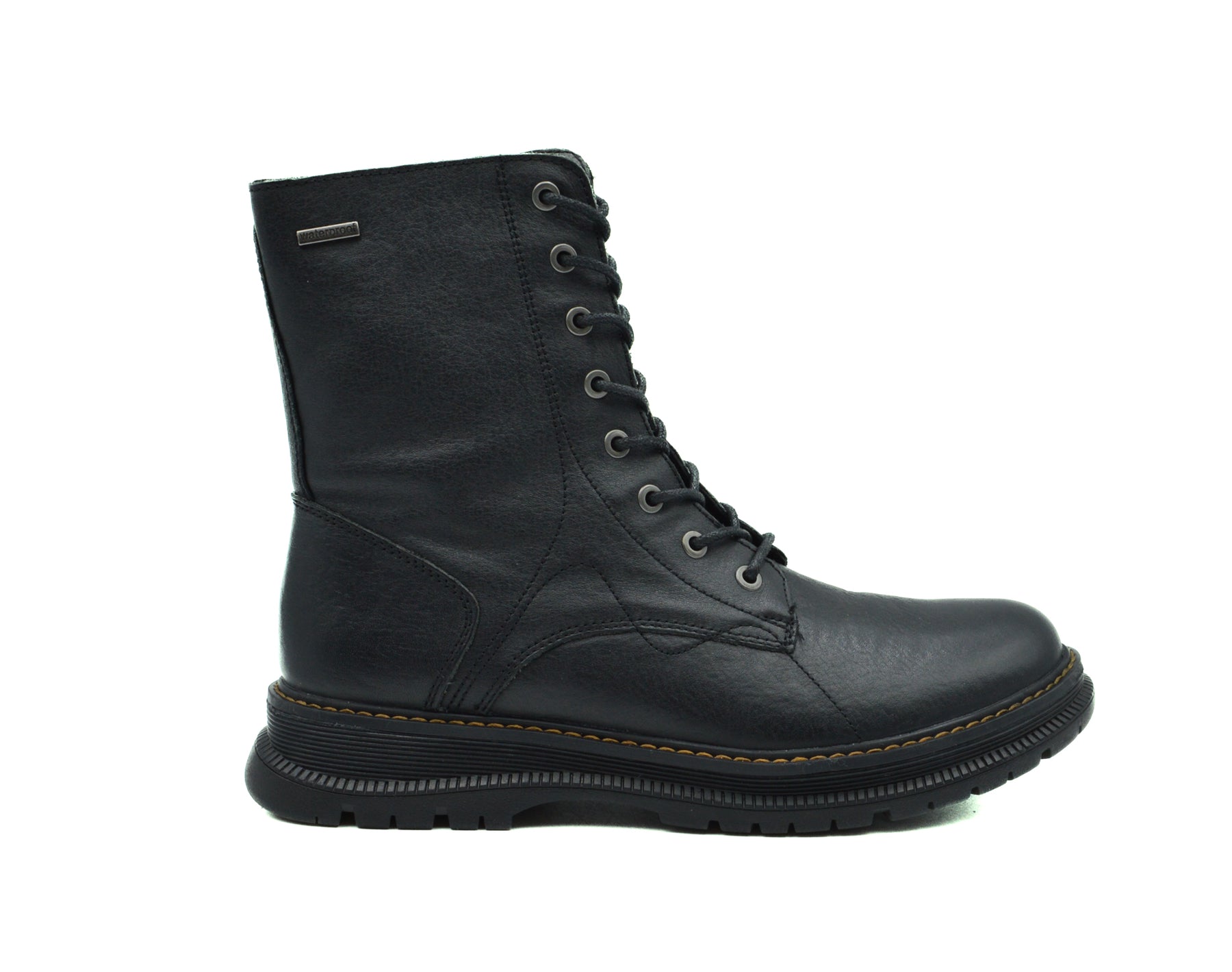 The Paloma 01 black combat boot from Josef Seibel is a boot that lends a tough talking edge with all the comfort. Constructed with a chunky lug sole with exceptional grip and shock absorbance, as well as removeable insoles. Lace up styling with an inside zipper for an easier on and off. Made with a special waterproof membrane, coupled with treated uppers that allows breathability and long-lasting waterproof protection.