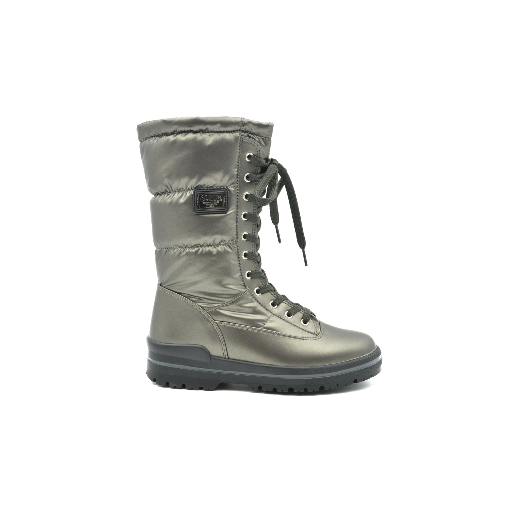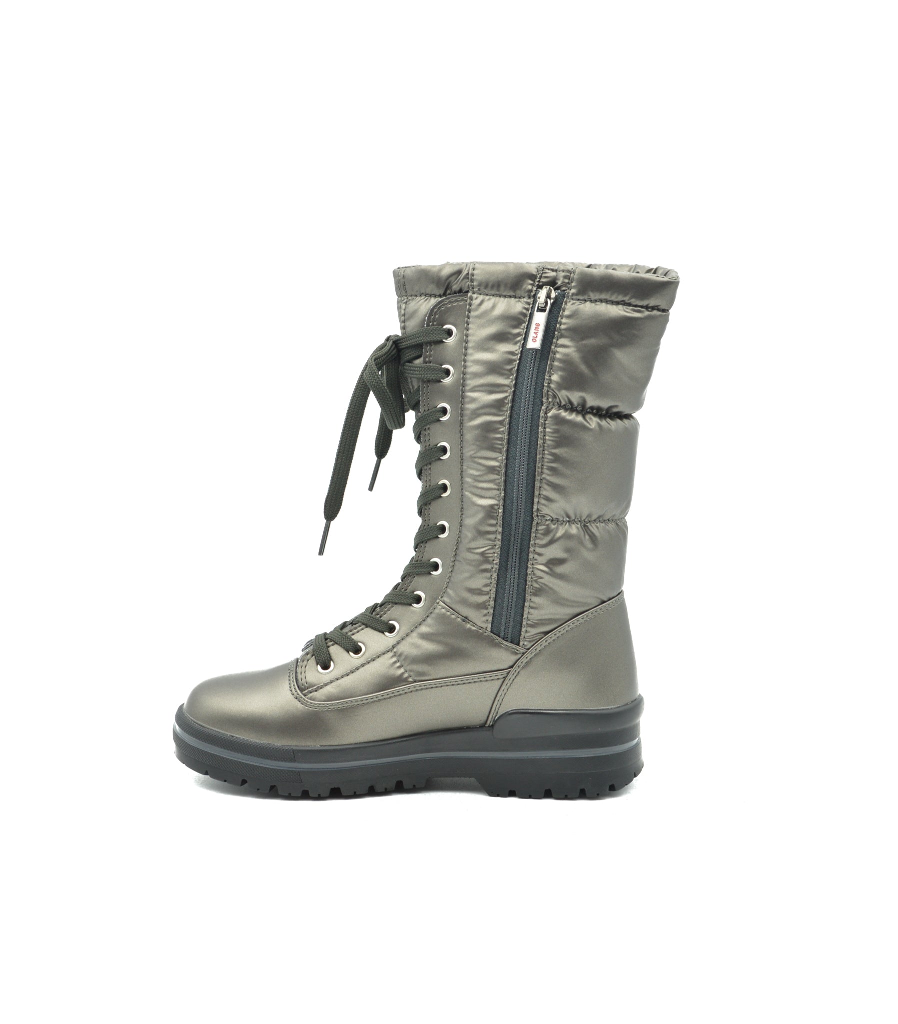 Stand out with an ultra-trendy urban style with our popular Glamour winter boots. Made from vegan materials, this quilted-effect mid-calf style is fashioned with a striking lustrous PU exterior and full-length lacing to elongate the leg and assert your femininity even in winter.