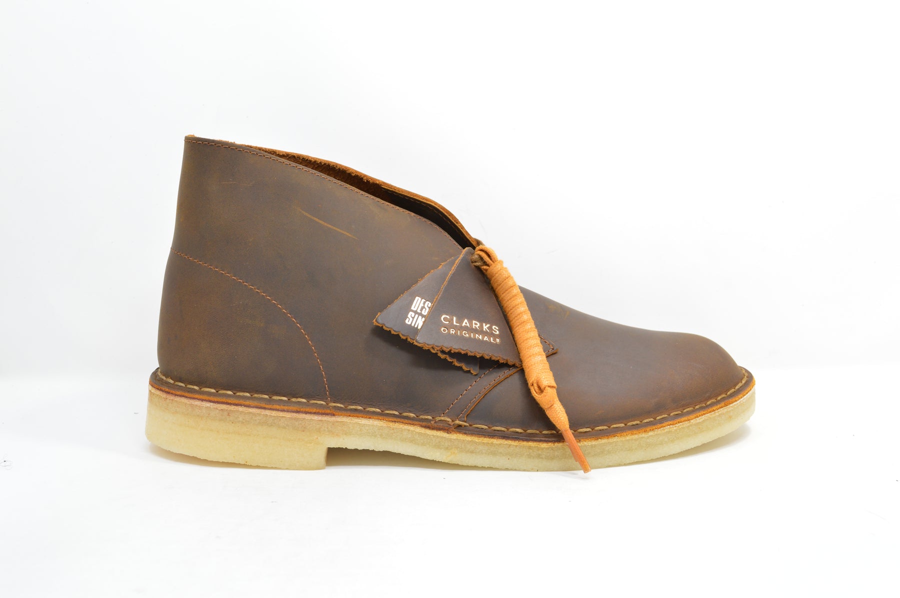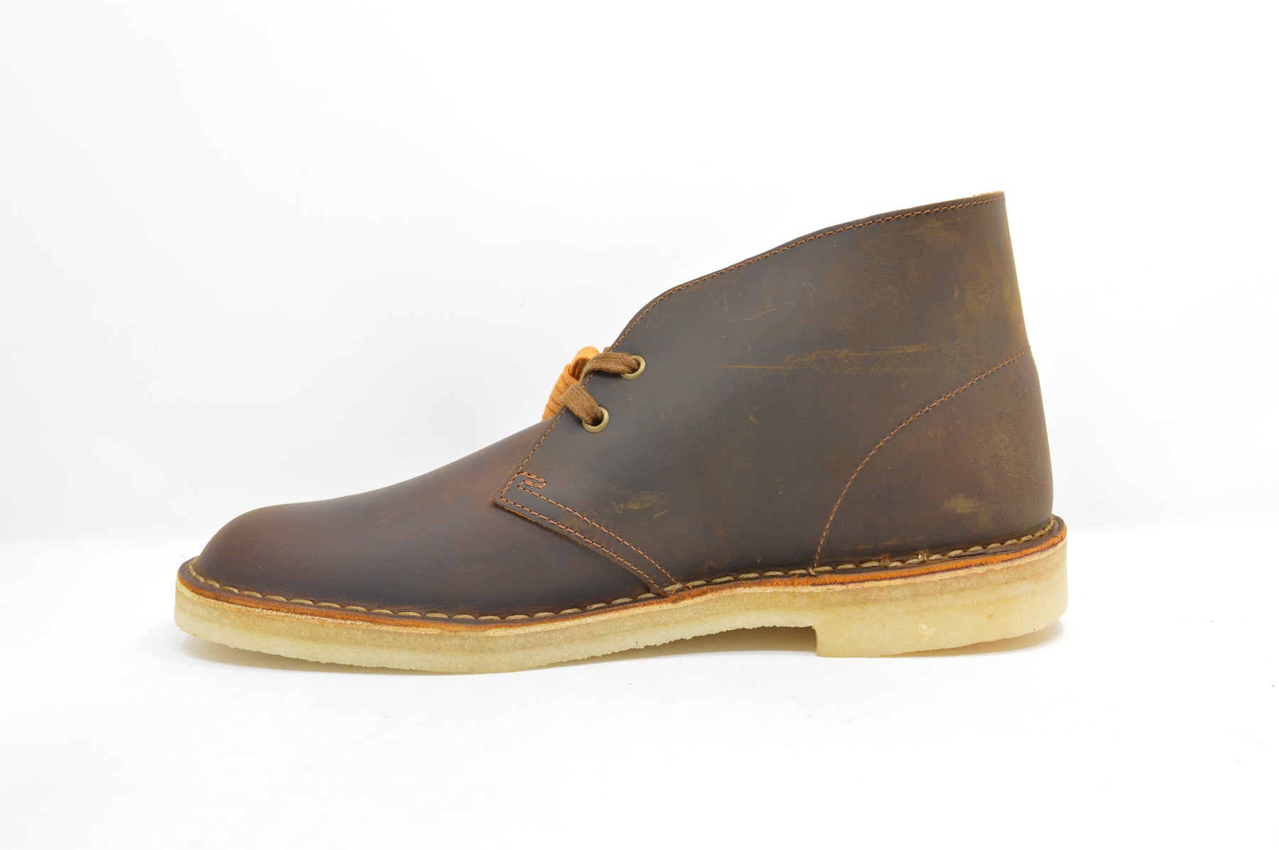 Cultural cachet and design DNA: no shoe is quite like the Clarks Originals Desert Boot. Nathan Clark’s 1950 design was inspired by a rough boot from Cairo’s Old Bazaar, and its minimal, progressive style sparked a worldwide footwear revolution – worn by beatniks, mods, Britpop bands, and Jamaican rude boys, from Paris to Kingston, Tokyo to London. Every design detail today remains true to that first pioneering pair – here, the boot’s crafted, clean lines are enhanced with premium beeswax leather, finished with an unfussy lace fastening. The authentic, sustainably sourced crepe sole completes this distinctive silhouette. Instantly recognizable, forever iconic. A true original.