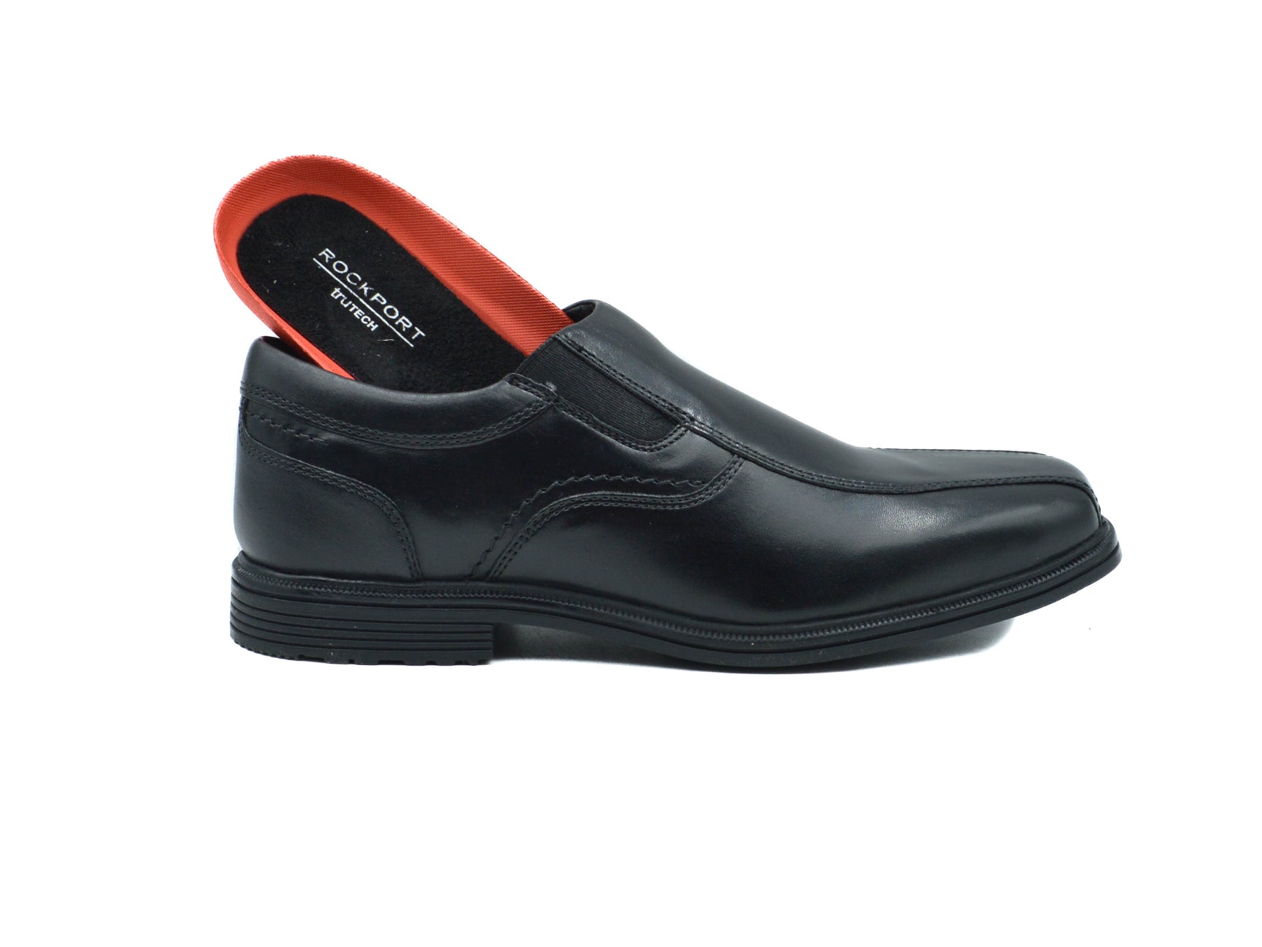 Appear neat and elegant wherever you go sporting these men’s Rockport Taylor black loafers. Made of leather upper with Hydro-Shield® weatherproof and waterproof construction, these semi-dress shoes have a round toe front, slip-on design, flexible gore elastic side panels, supportive steel shank, hand-finished stitching, truTECH® sport technology for shock-absorbing heel cushioning, and a slip-resistant thermoplastic rubber outsole.
