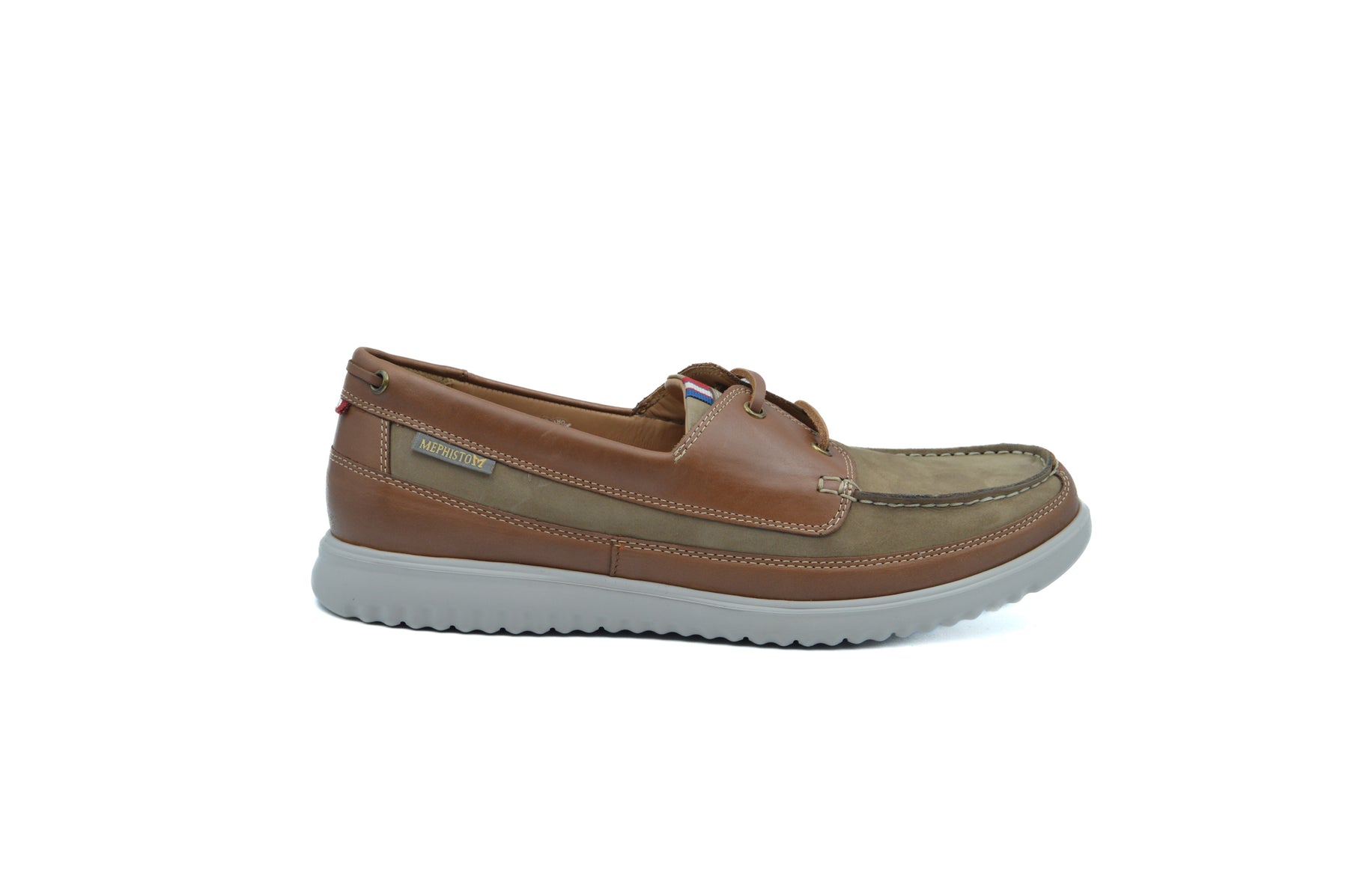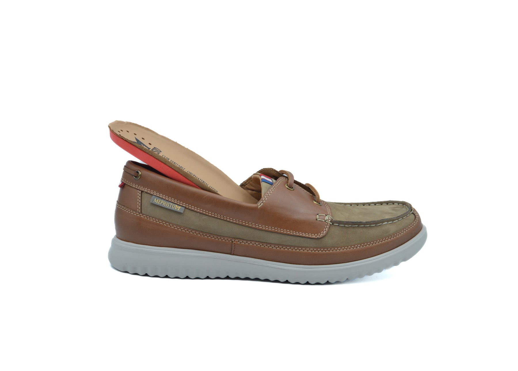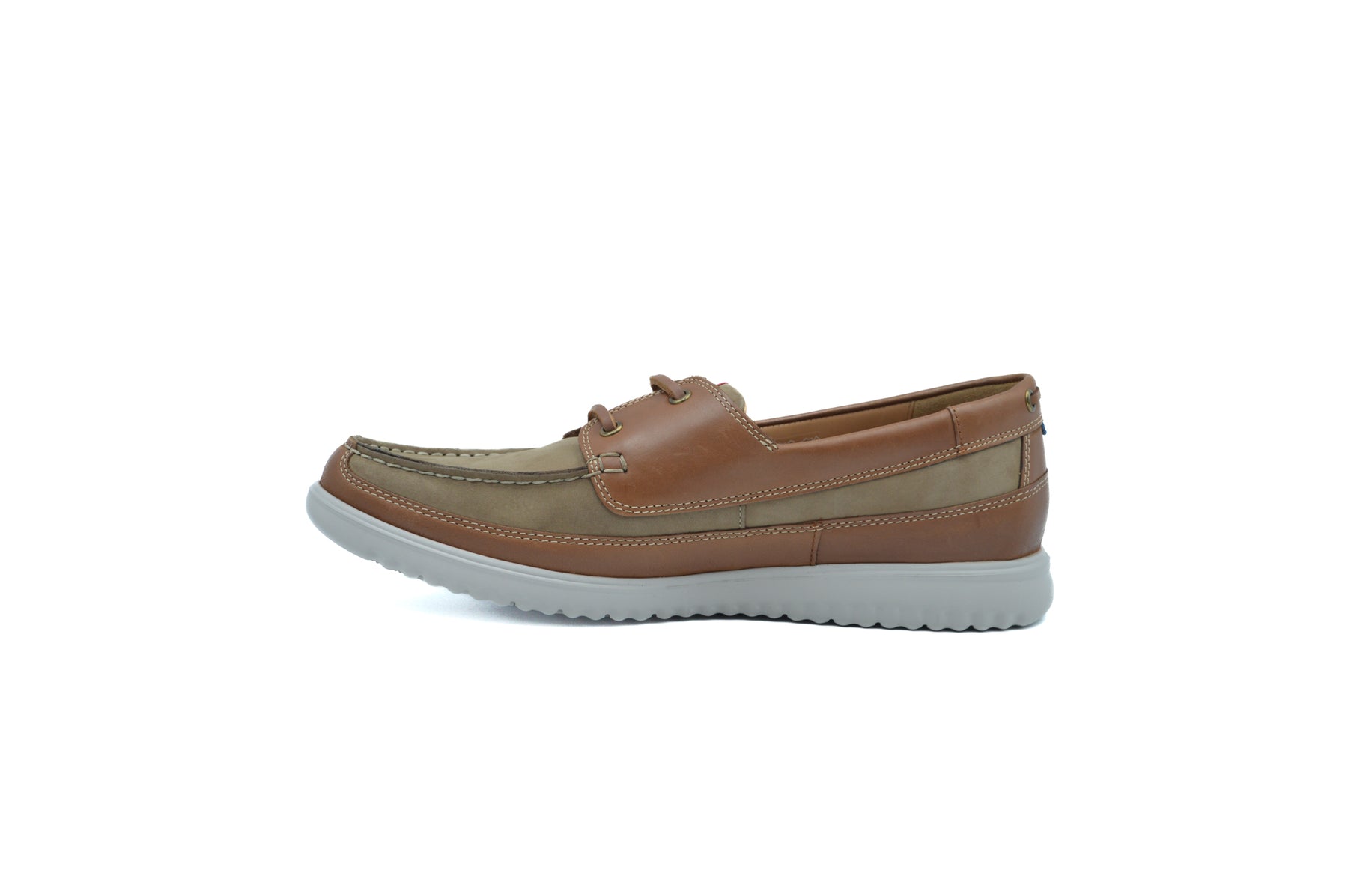 Two-tone leather elevates a classic boat shoe with SOFT-AIR Technology to ensure cushioned comfort and shock absorption.