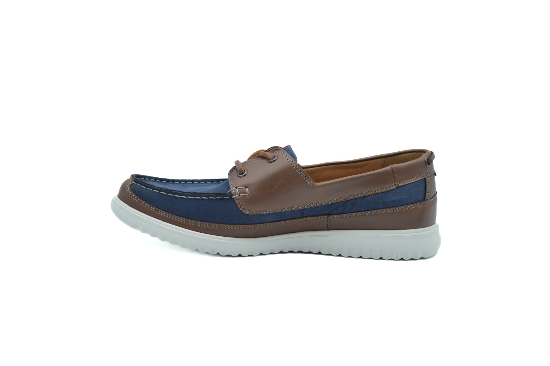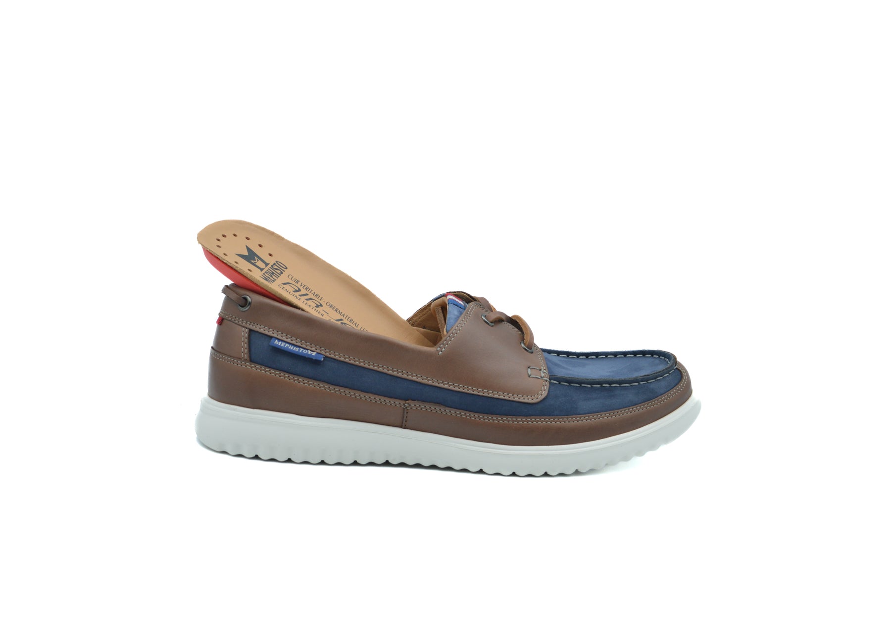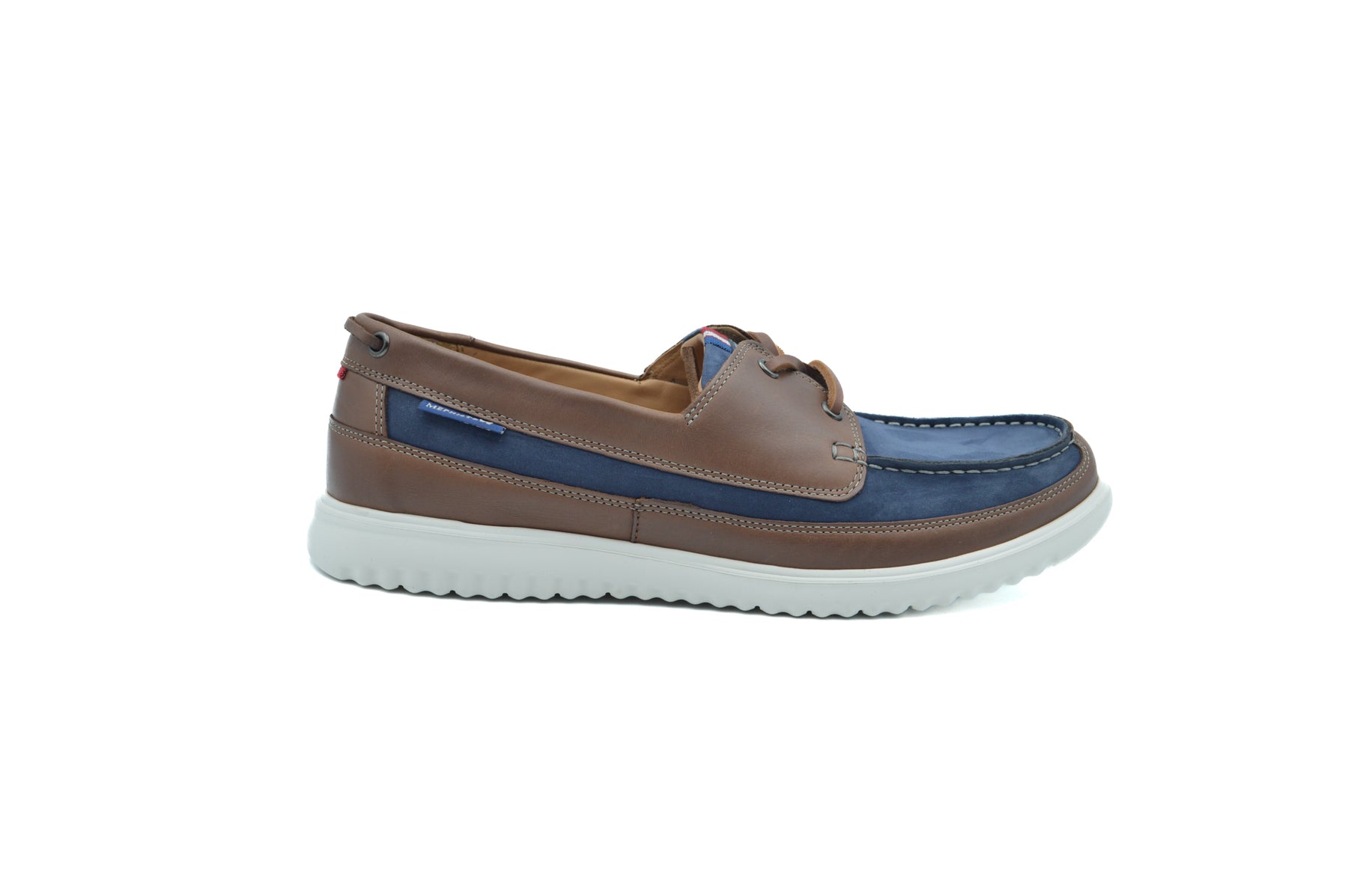 This boat-style shoe boasts a timeless design that is equally pleasing to the classic man as to the modern man. Its leather lining promotes a healthy climate inside the shoe. This men's blue model has nubuck leather at the sides and front of the foot and soft leather distributed around the foot.