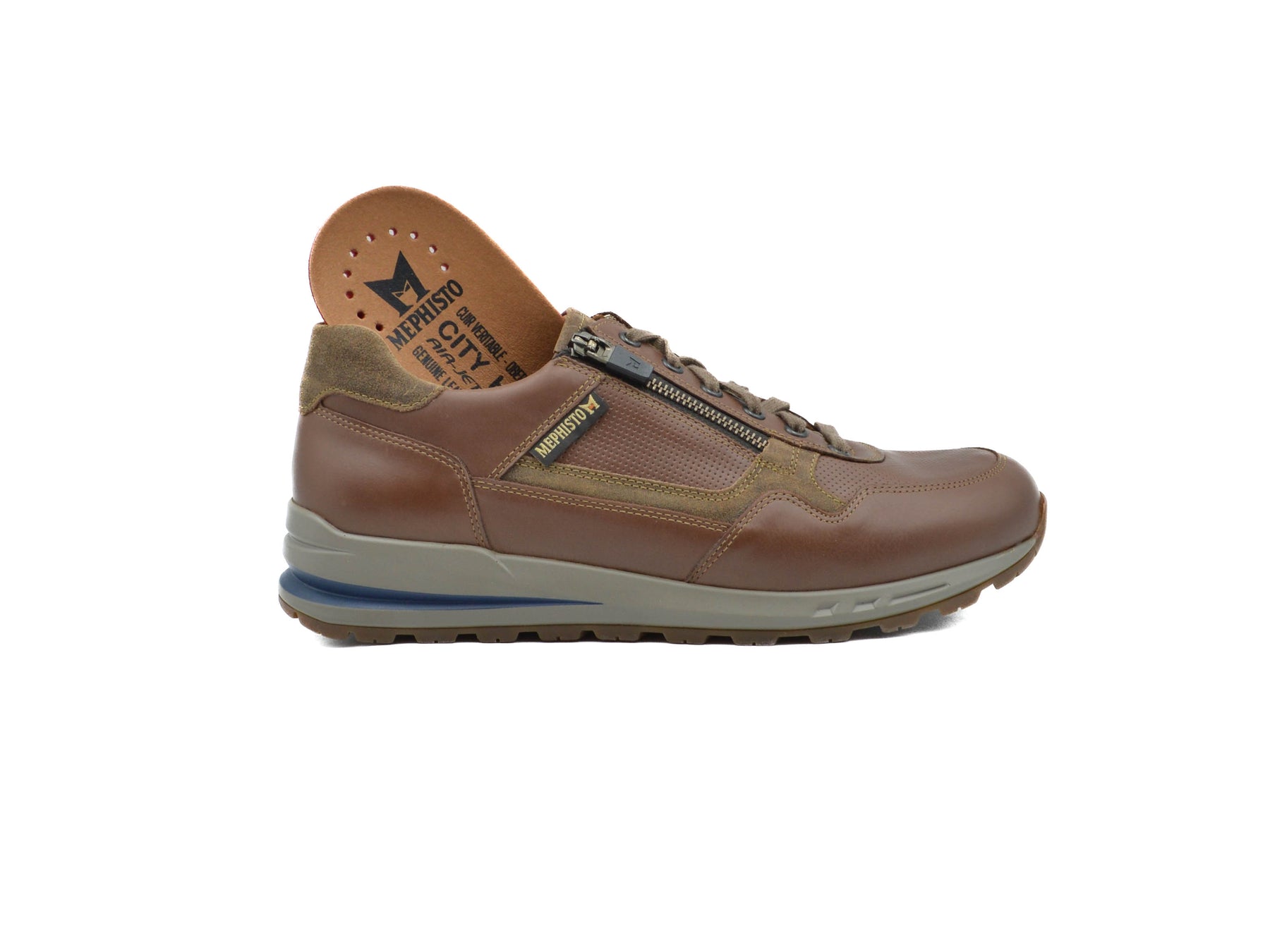 MEPHISTO BRADLEY | Men Sneaker. Fashionable-look sneaker, defined by a finely tailored cut. The SHOCK-ABSORBER, in the outsole, and the detachable insole, with integrated SOFT-AIR Technology, help to minimise impact for a gentle, effortless walk. In addition to the lacing, its side zip fastening makes it easy to slip on. Its leather lining promotes a healthy climate inside the shoe.