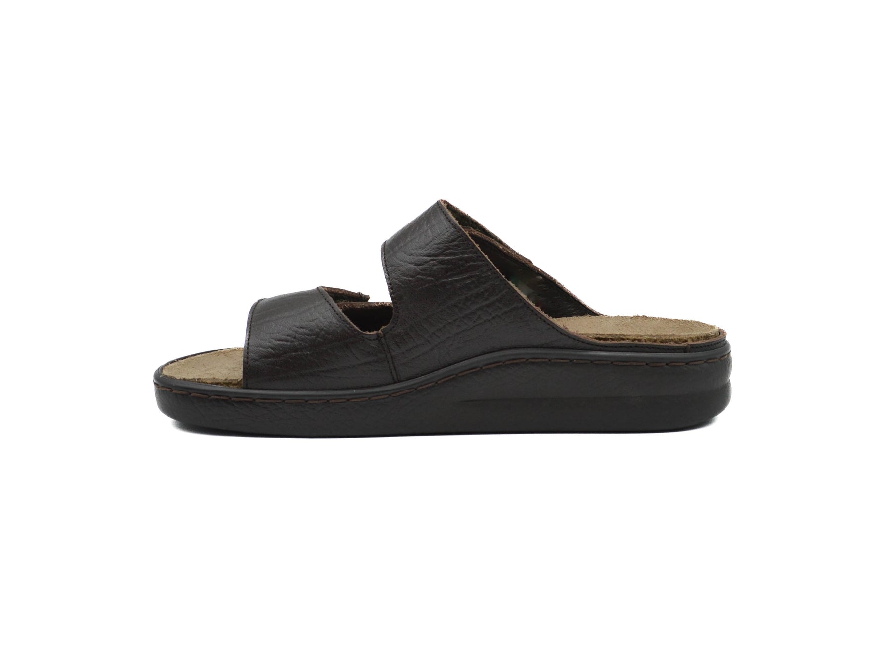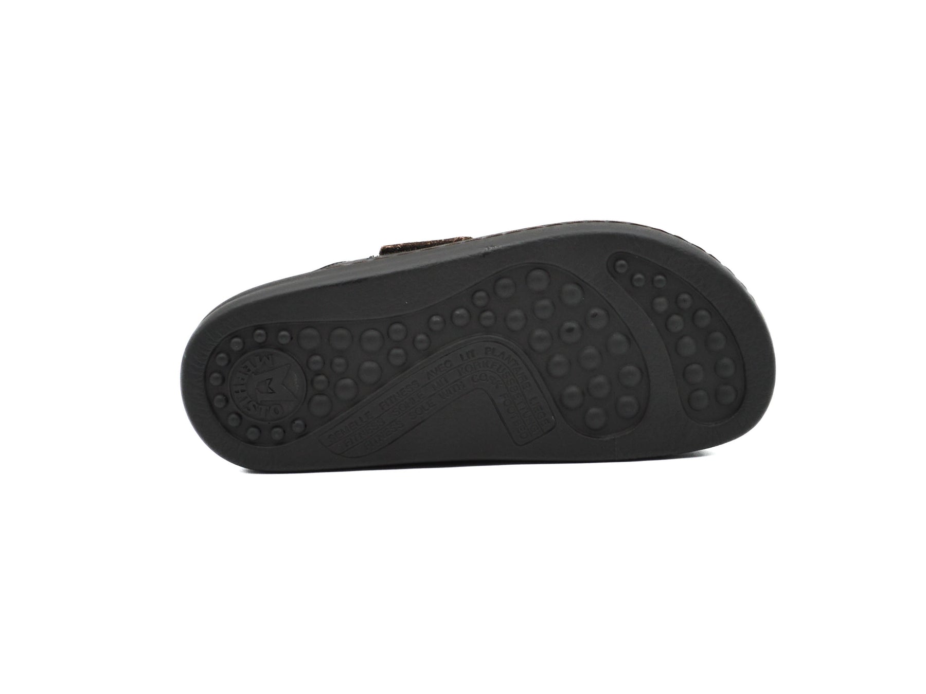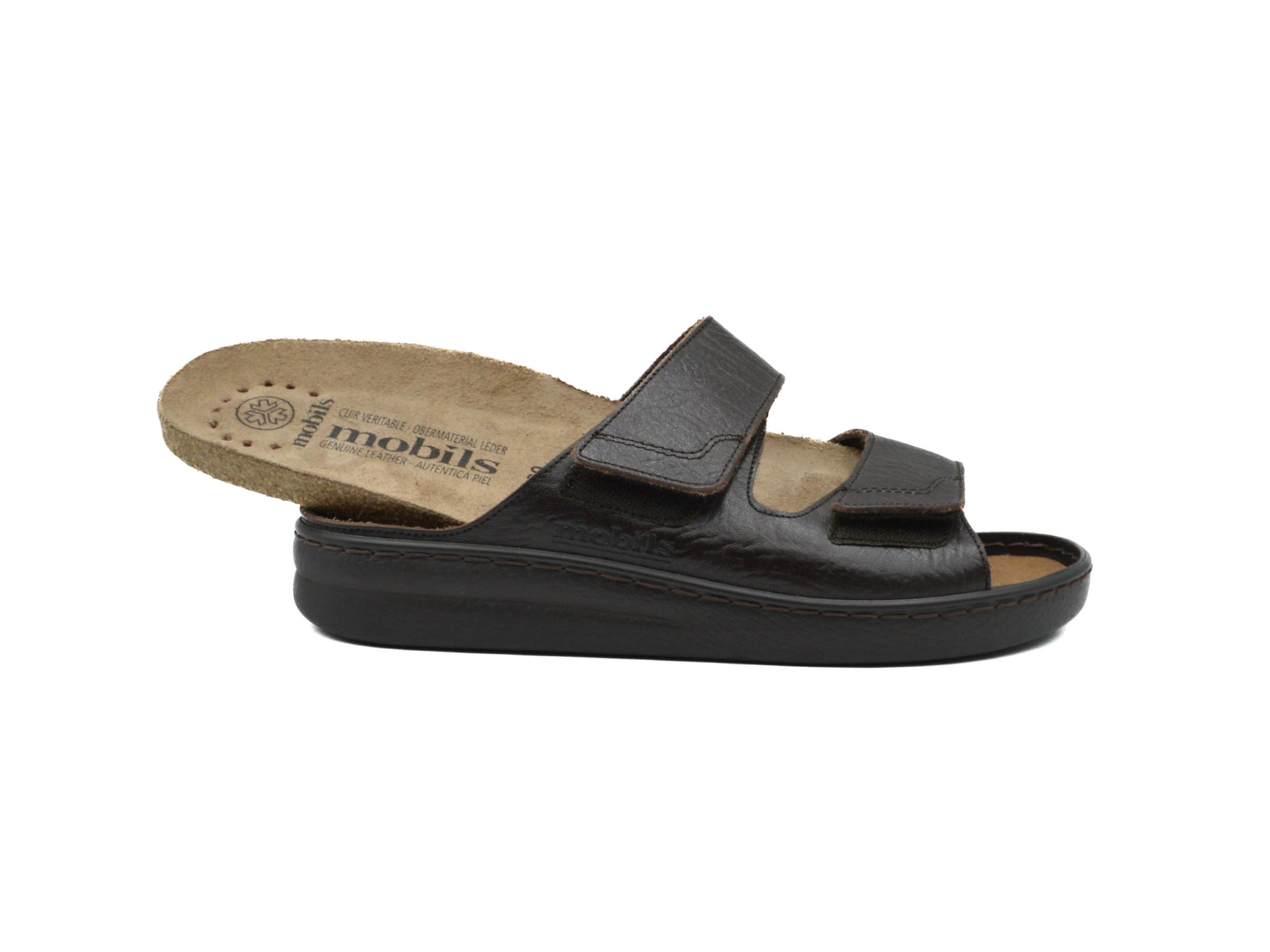 Easy to slip on and very comfortable, this sandal will satisfy all your needs. The anatomical insole, equipped with SOFT-AIR Technology, is detachable and rests on a cork footbed. Its INTEGRAL CUSHIONING promotes an enhanced sense of well-being. The adjustable adhesive straps ensure a perfect fit. The leather lining ensures good foot hygiene.