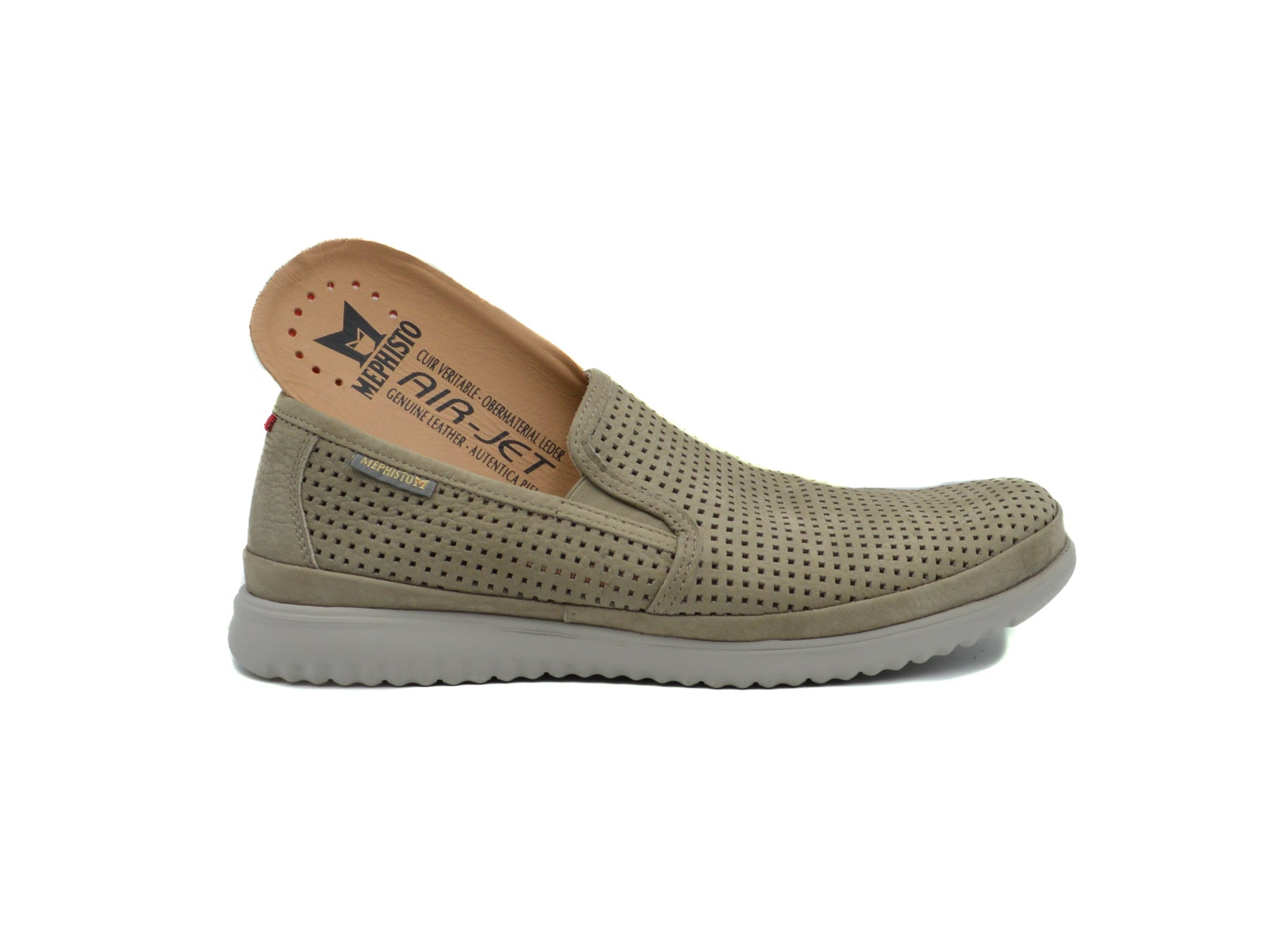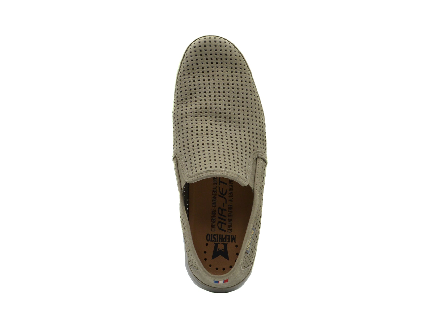 MEPHISTO TIAGO | Men Shoes Leather Nubuck. This ultra-lightweight, perforated slip-on will take you through the summer. The SHOCK-ABSORBER, in the outsole, and the detachable insole, with integrated SOFT-AIR Technology, help to minimise impact, whilst ensuring a healthy climate inside the shoe. Slip-on with elasticated inserts at the top of the foot for perfect support. Its leather lining promotes a healthy climate inside the shoe.