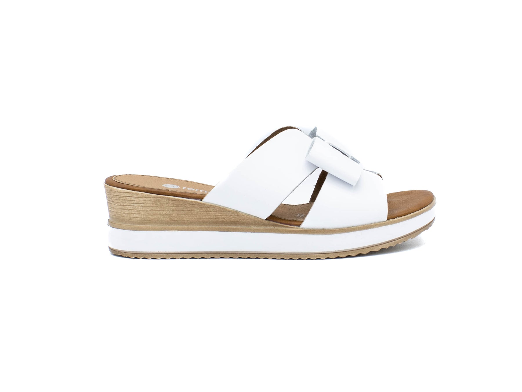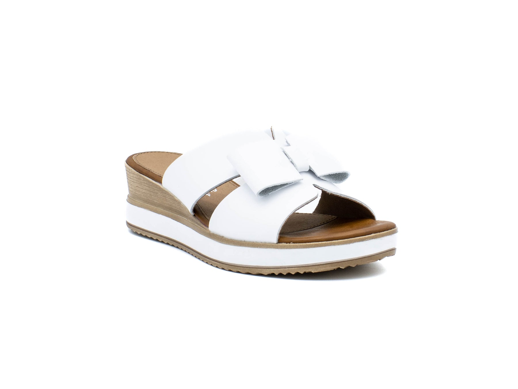 Dress in this summer slip on sandal in soft leather and cushioning insole. Closure slip on. Fitting is regular.