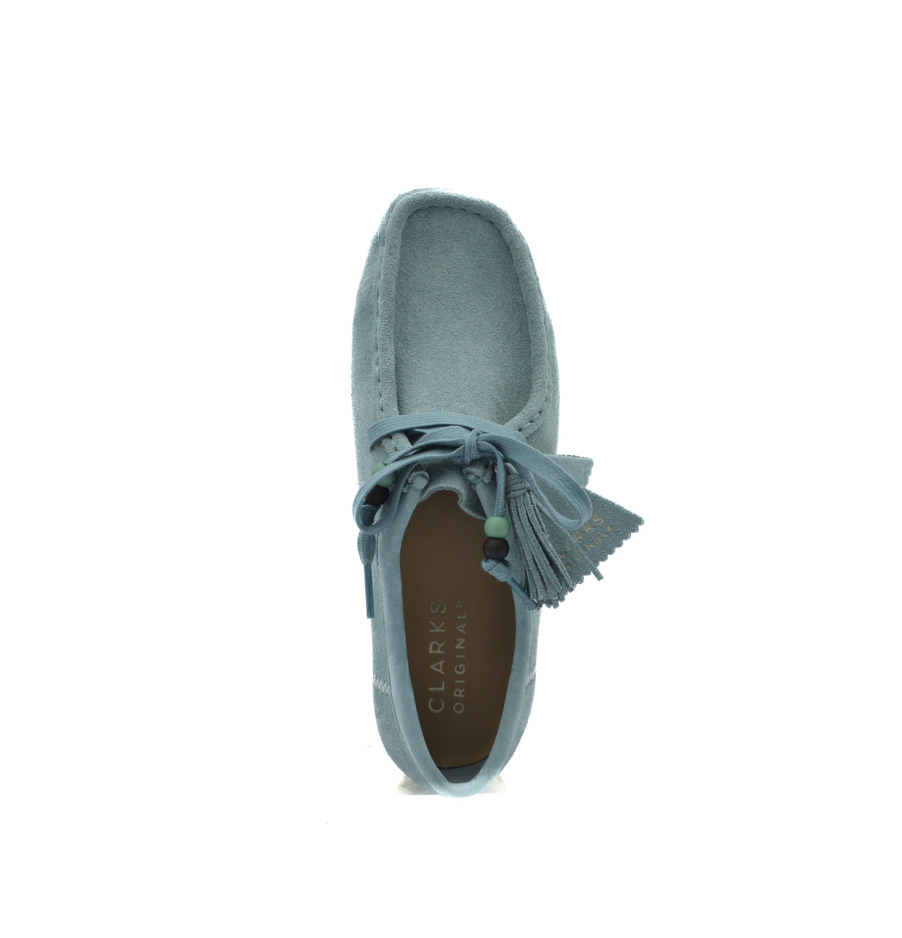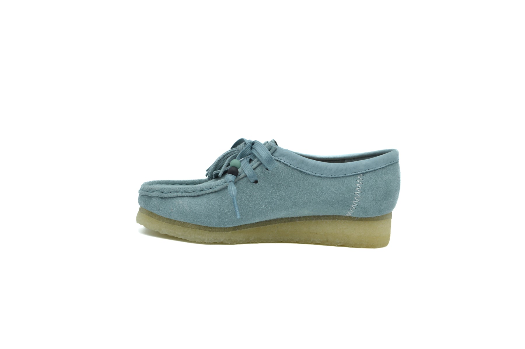 Step out in style and look fresh in these ocean blue wallabee shoes from Clarks Originals. They feature a heritage moccasin shape - which this style is typically known for - with premium suede uppers, which sit atop natural crepe rubber soles.
