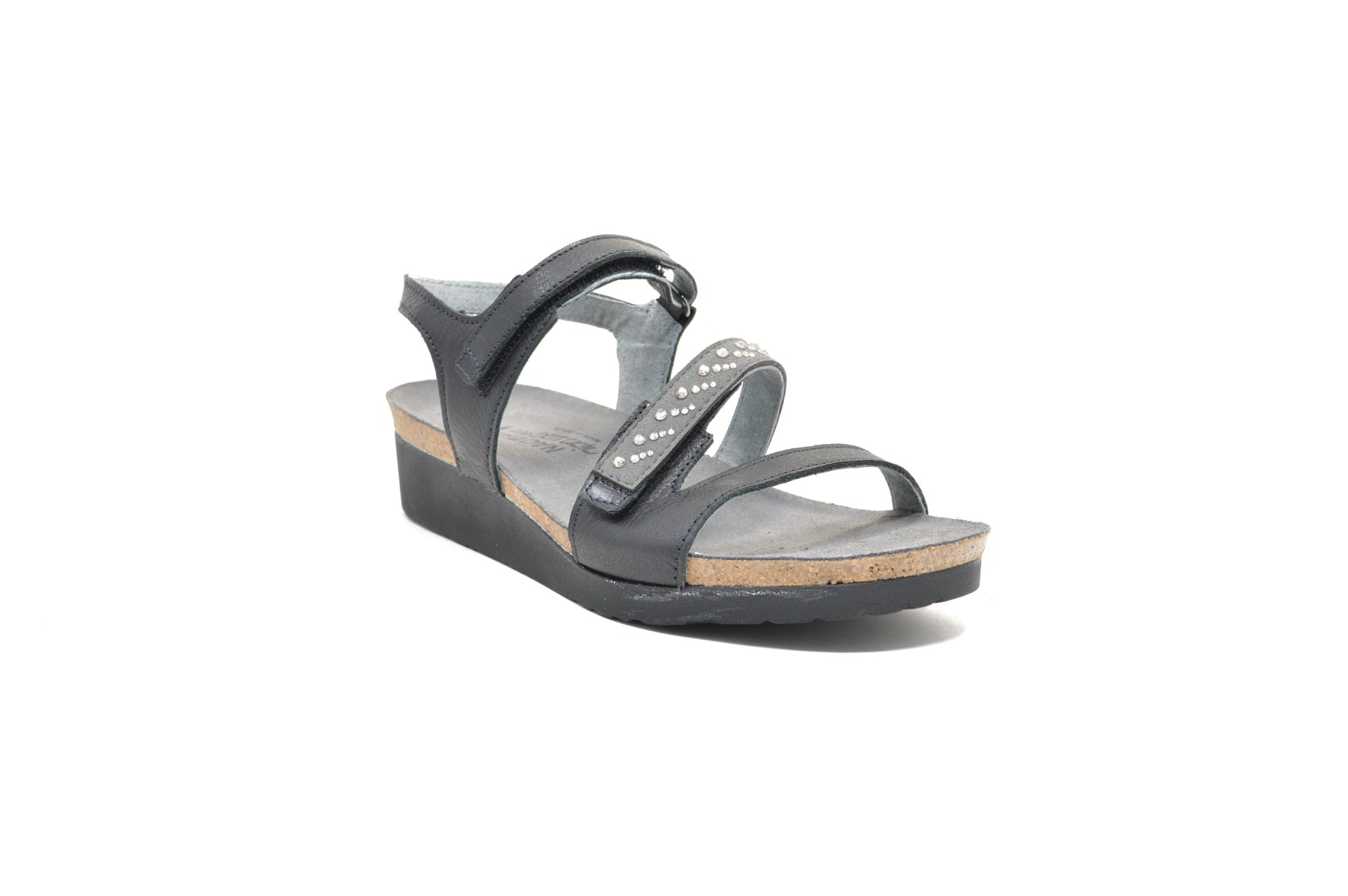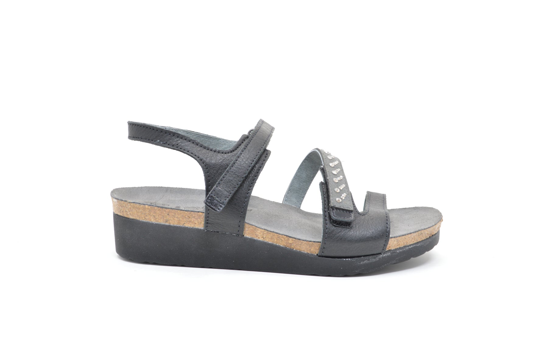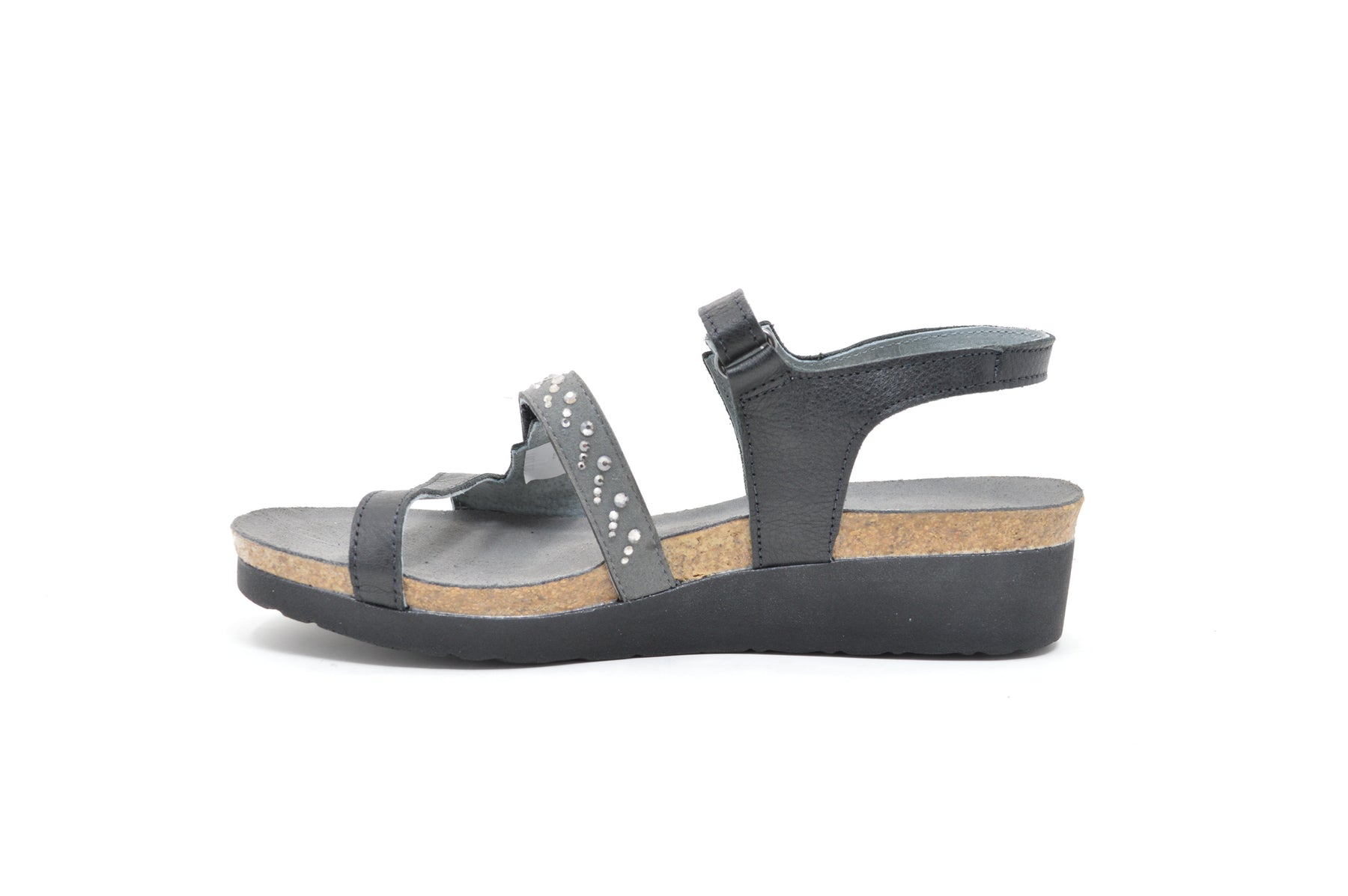The Naot Women’s Kendall Sandal is a fun back strap sandal offered in soft leather and smooth nubuck with touch of bling. Naot’s anatomic cork & latex footbed is wrapped in a pampering suede and molds to the shape of the foot with wear. This style has a double hook and loop closure to allow for easy on/off and contains a back strap for added stability.