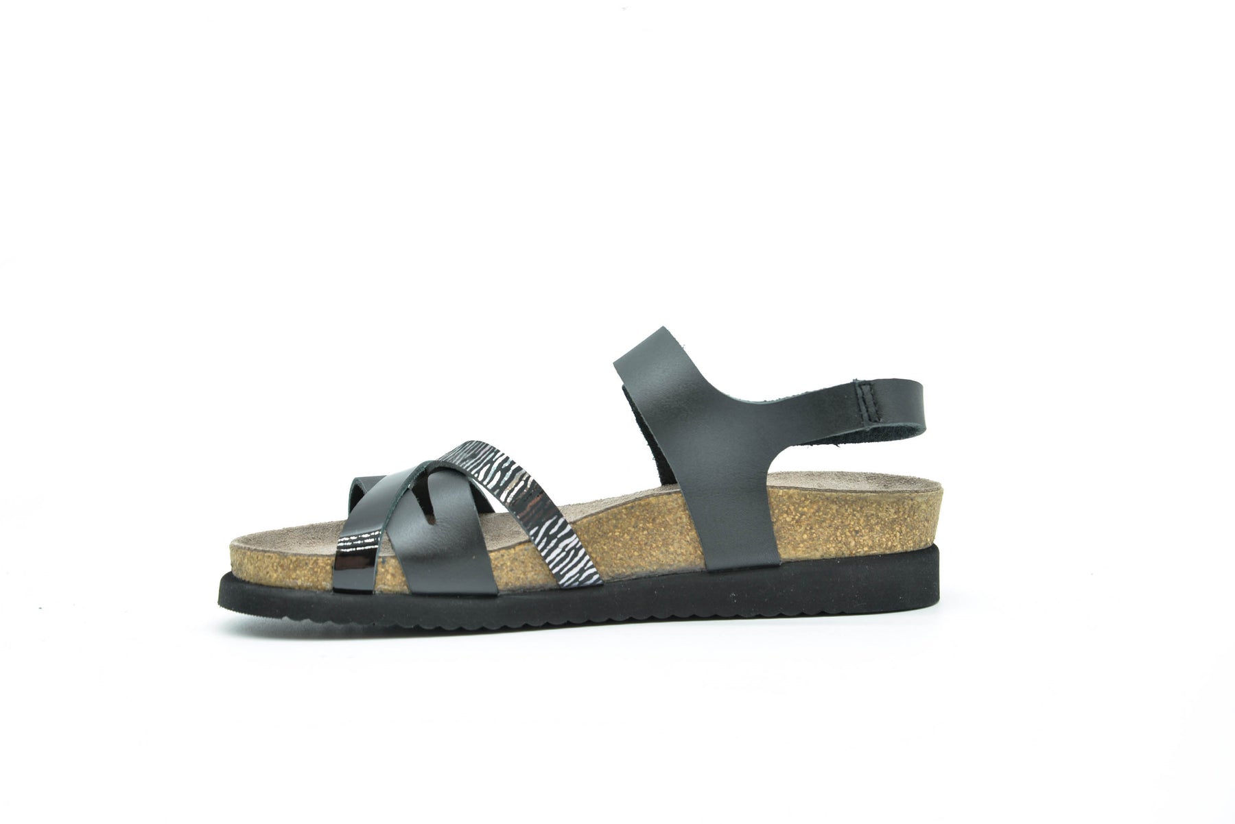 - Anatomically correct suede covered cork footbed forms to your foot and provides improved support