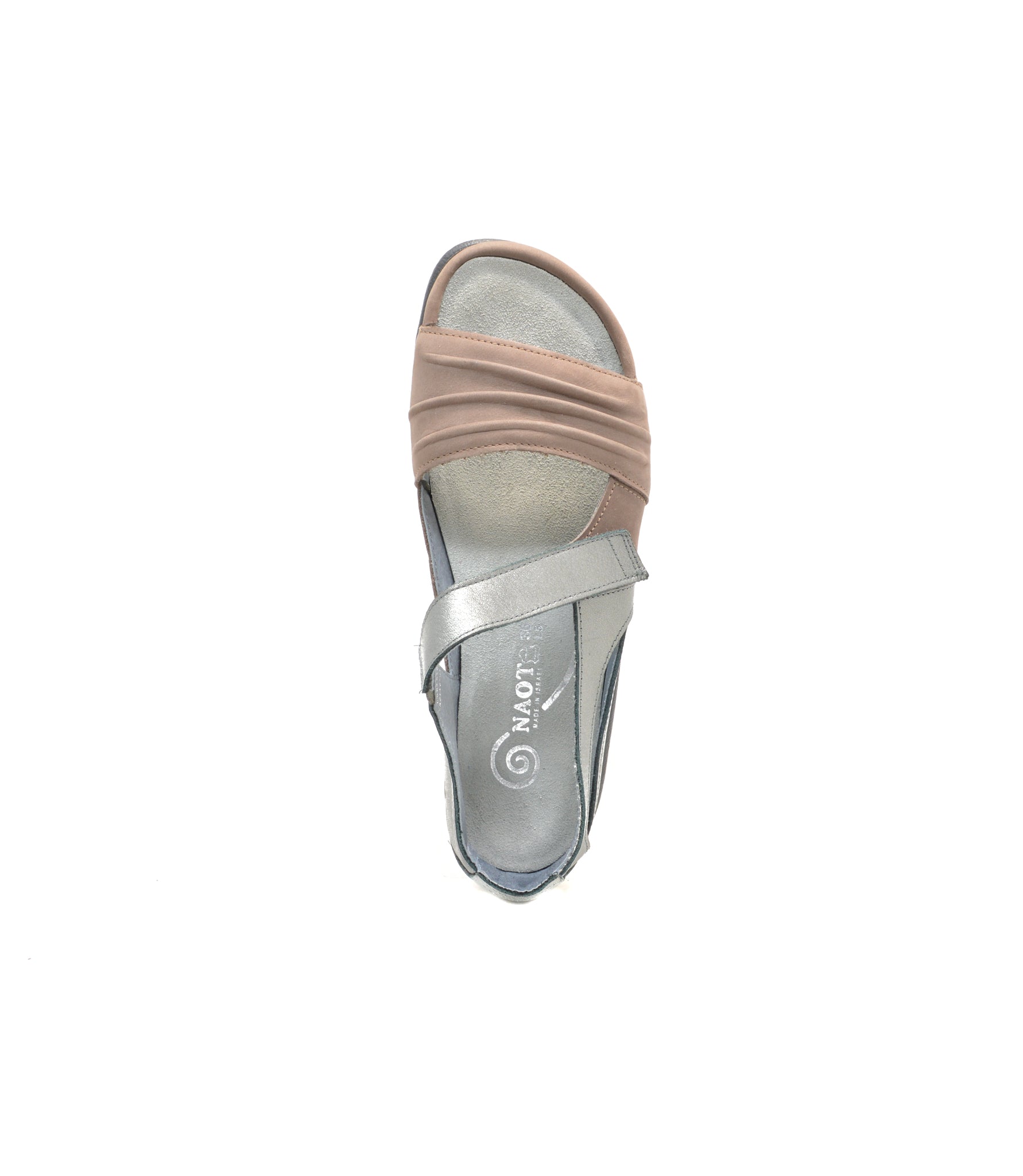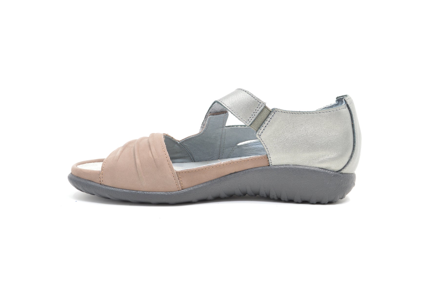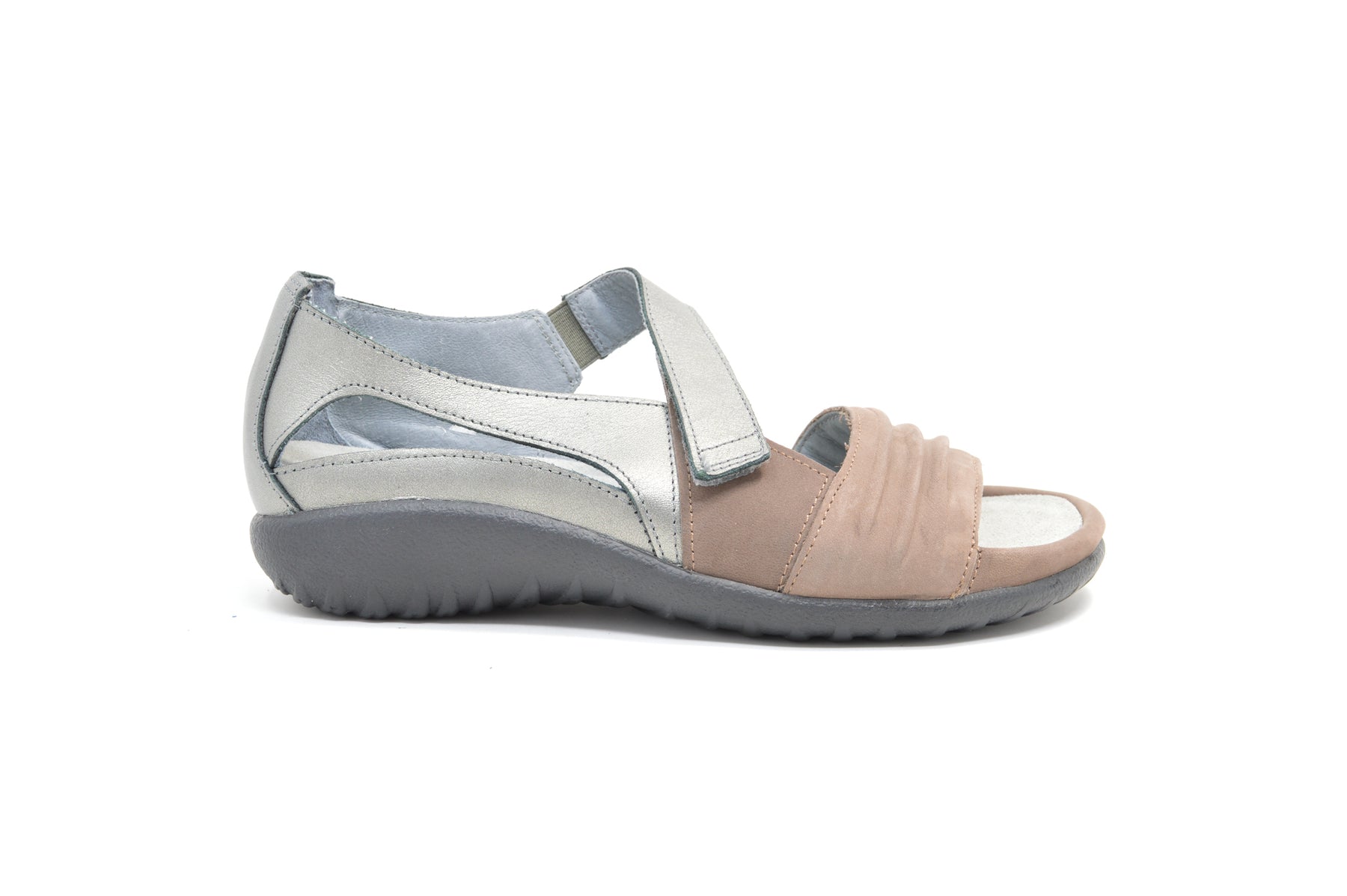 The Papaki is a fashionable sandal with a padded front strap & a contrasting ruched design. This style has a padded heel cup and a hook and loop closure at the instep. Naot's removable, anatomic cork & latex footbed is wrapped in pampering suede and molds to the shape of the foot with wear. The Koru Collection features a 1" polyurethane sole which is extremely lightweight, durable & slip resistant. This collection uses a hand-sewn stroble construction making it strong and extremely flexible.