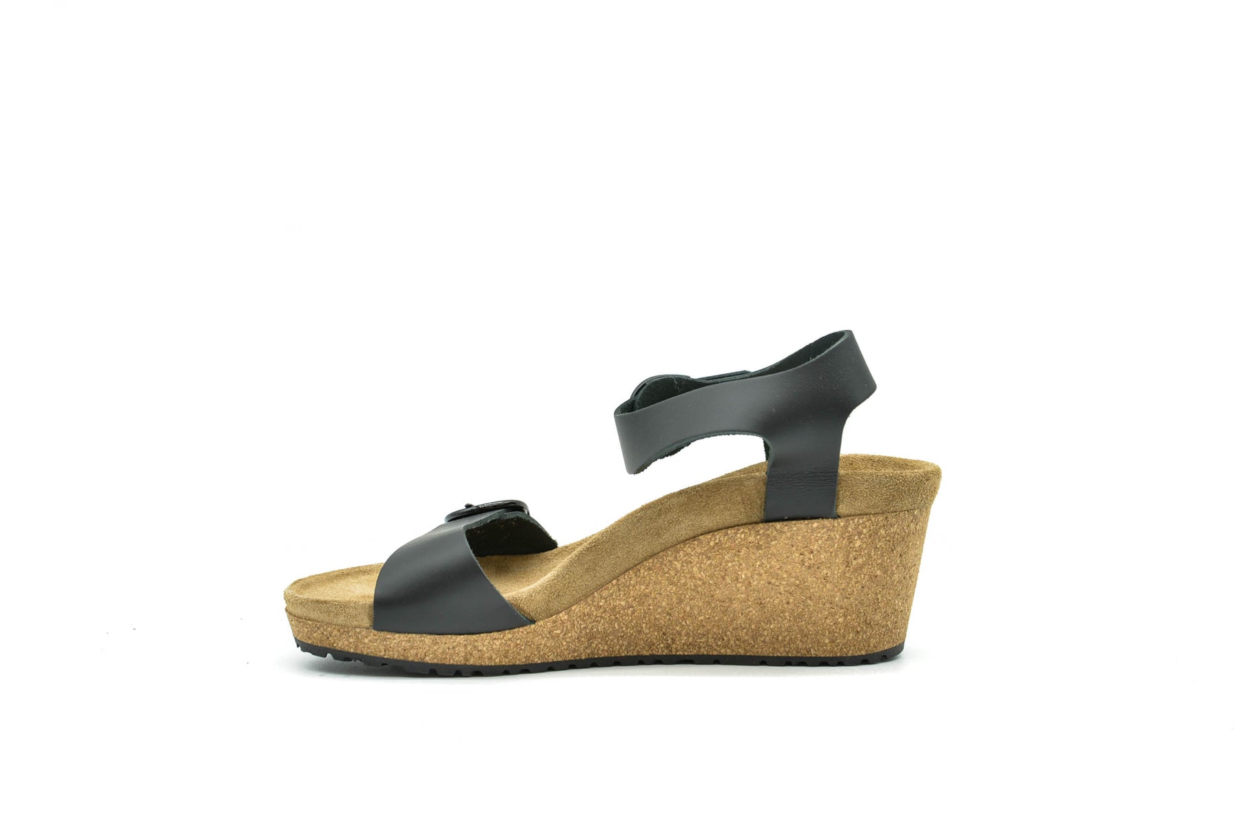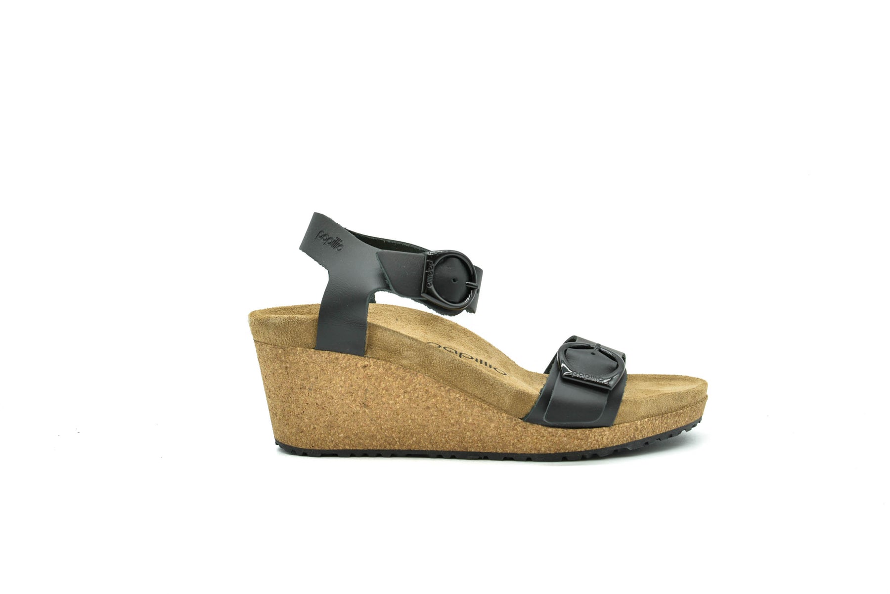The Soley is a classic wedge heel sandal from Papillio. The Soley is the perfect combination of style and comfort, with its simple design and sleek heel strap. The delicate circular buckles are an elegant eye-catcher to dress up any outfit. The upper is made from high-quality, soft natural leather.