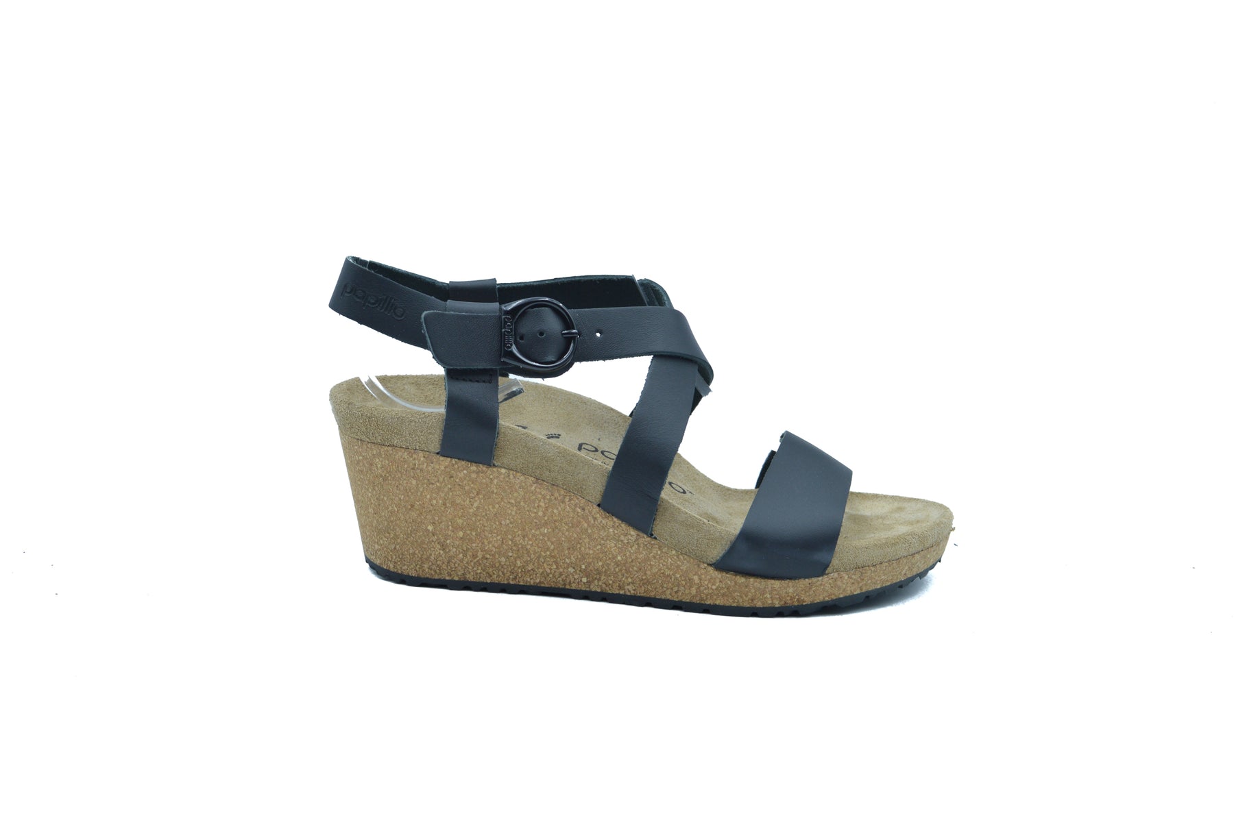 Meet the Sibyl, a strappy wedge heel sandal from Papillio. Stay comfortable and stylish with a lightweight footbed that promotes proper pressure distribution. The delicate circular buckle is an elegant eye-catcher to dress up any outfit. The upper is made from high-quality, smooth leather.