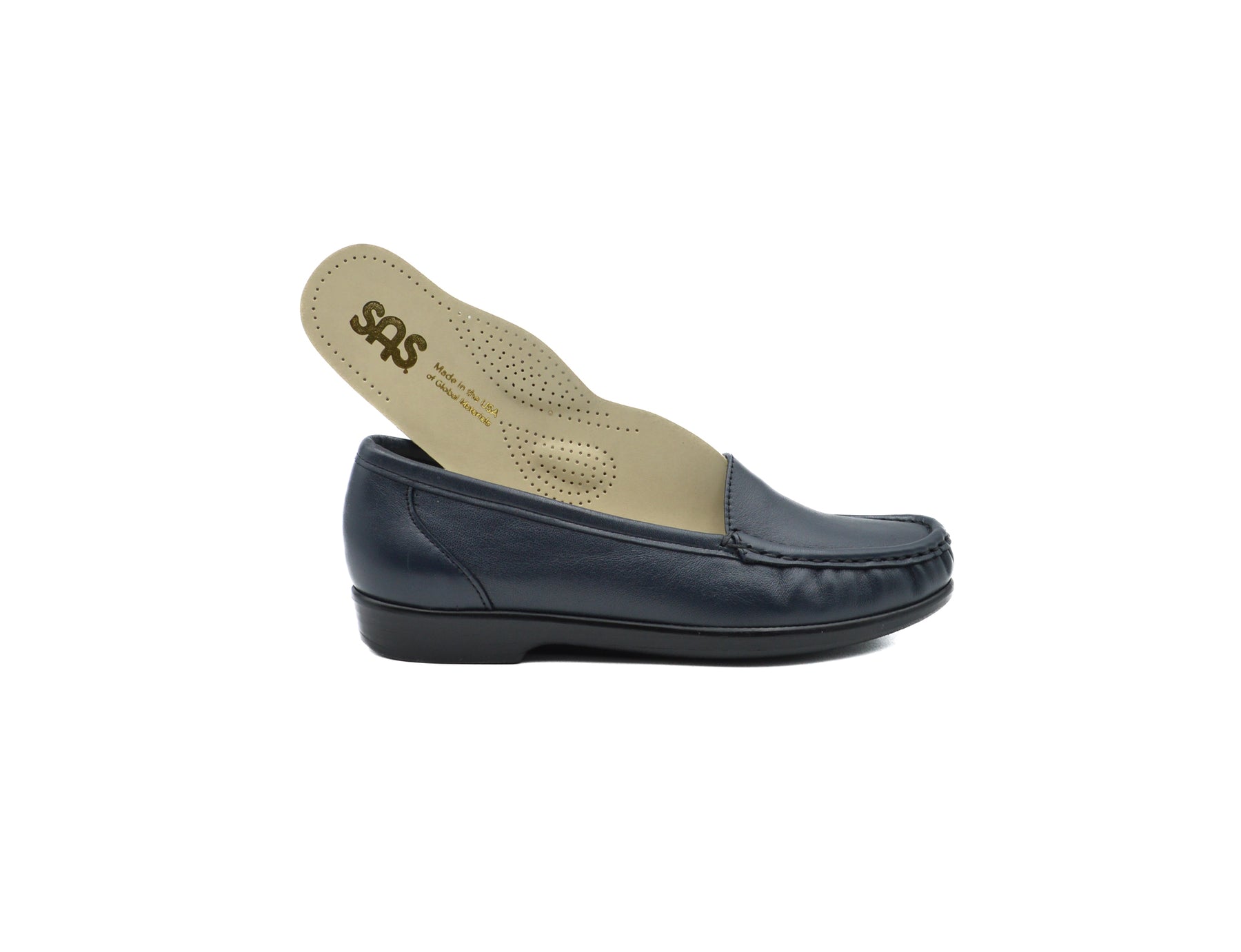 For those who like to keep it simple, here's a Simplify moccasin loafer with timeless, elegant style. Soft leather with padded lining wraps completely around the foot for a plush feel. A removable cushioned footbed and a lightweight shock-absorbing sole supports you with every step. Designed to follow the shape and natural arches of your foot, Simplify utilizes a comfortable Tripad-Moc™ Technology for extra comfort and support. Simplify provides extra toe room to allow your foot to properly set when walking as well as a soft shock-reducing polyurethane sole for a lighter, cushioned step.