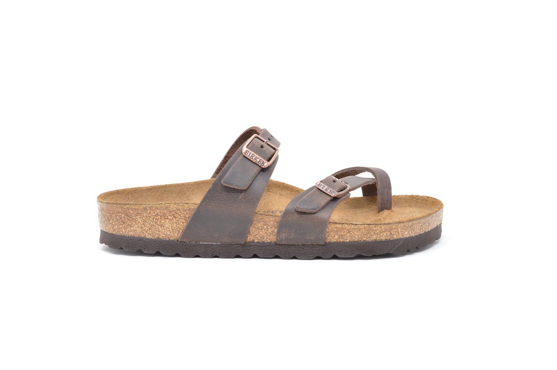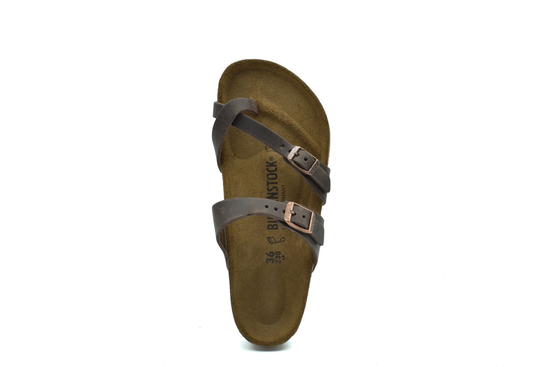 Supremely comfortable with sophisticated, crisscross straps, the Mayari redefines the thong sandal with a single toe loop. Oiled nubuck leather lends a perfectly lived-in look to the strappy style. Complete with classic BIRKENSTOCK design elements, like adjustable buckle closures and a contoured footbed for the ultimate in support.