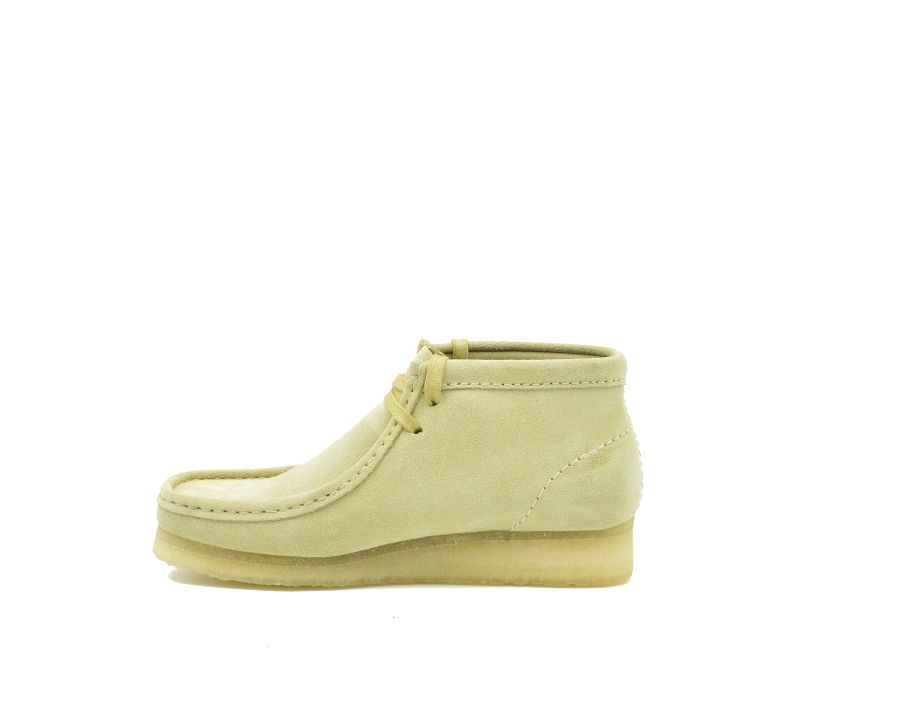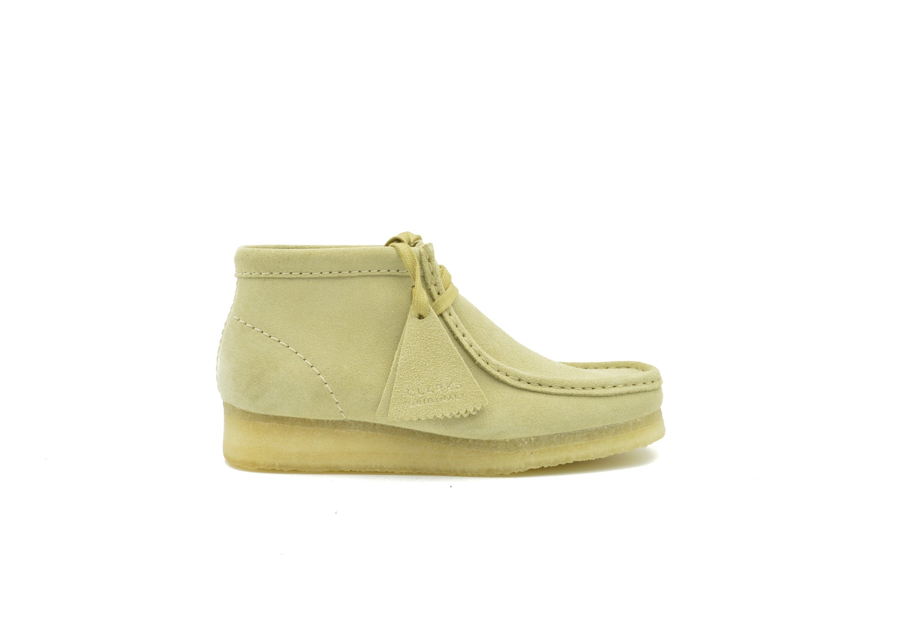 The iconic Clarks Wallabee Boot, faithfully made with a soft suede upper and a genuine crepe outsole. Its leather lining and sockliner surround the foot in soft comfort, and an airy EVA midsole lightens its weight. Pairs effortlessly with jeans and a top for a fast, no-fuss look.