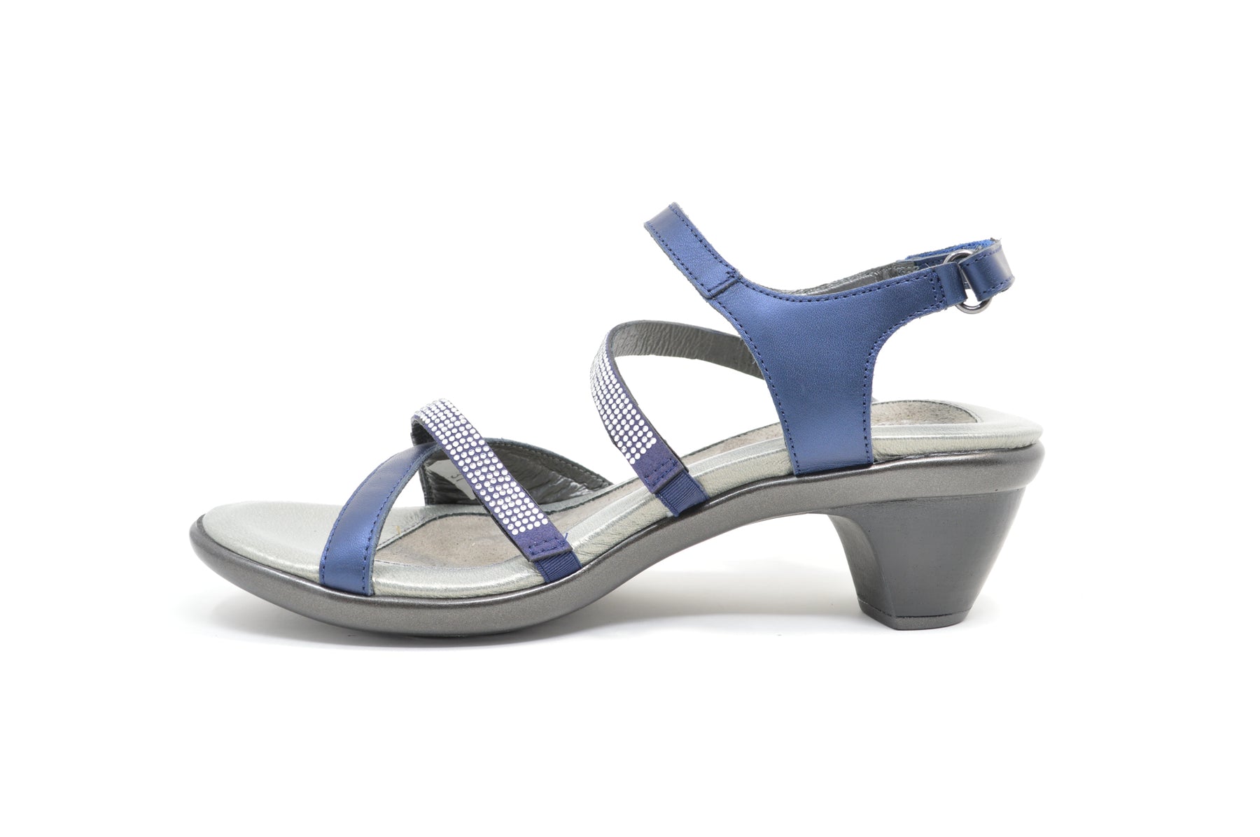 The Innovate is the perfect backstrap heel for all of your festive events! This sandal has a hook & loop backstrap & gore at the middle straps creating a custom fit. The Innovate has a padded front strap for ultimate comfort. The feminine rhinestone accents make this shoe stand out from the crowd. Naot's anatomic cork & latex footbed is wrapped in leather with a microfiber center to prevent slipping and molds to the shape of the foot with wear. The Avantgarde Collection features a TPR sole with a metal shank. This sole offers the look of a 2" heel without the feel.