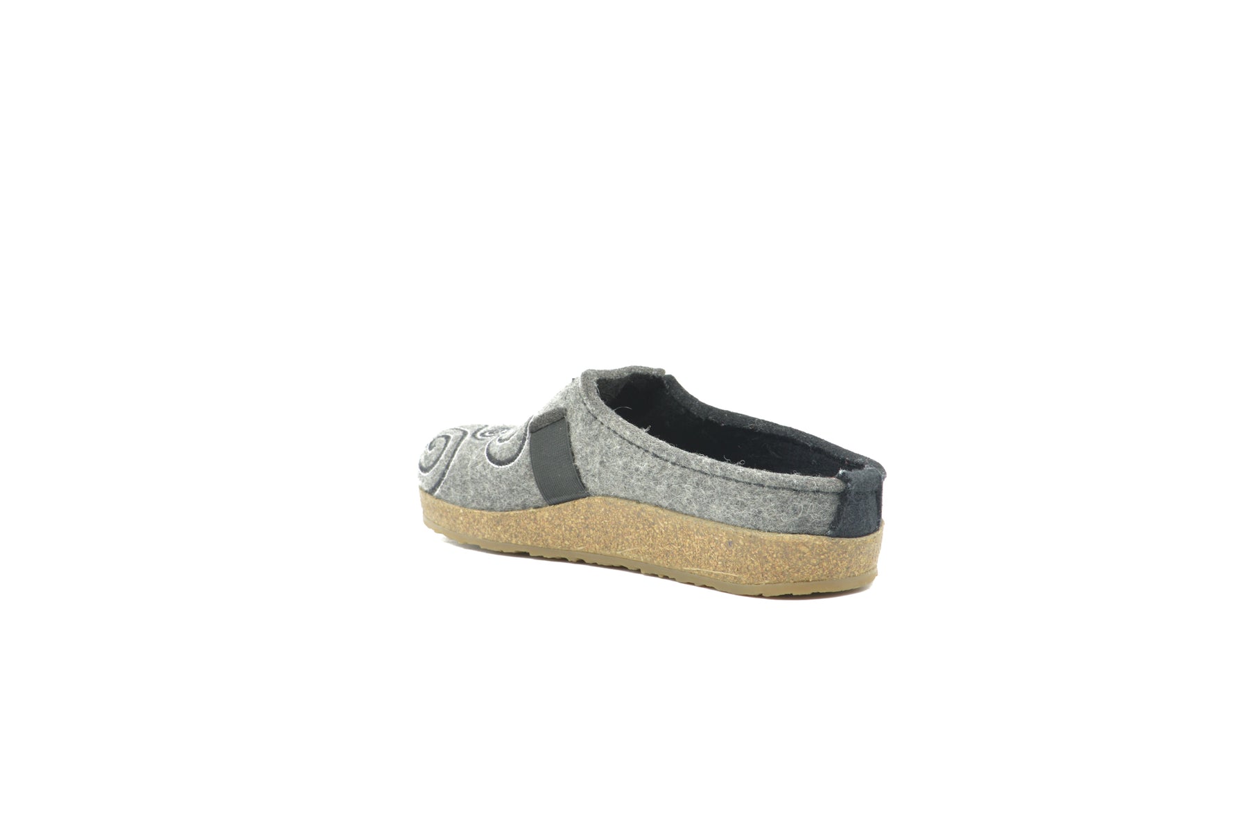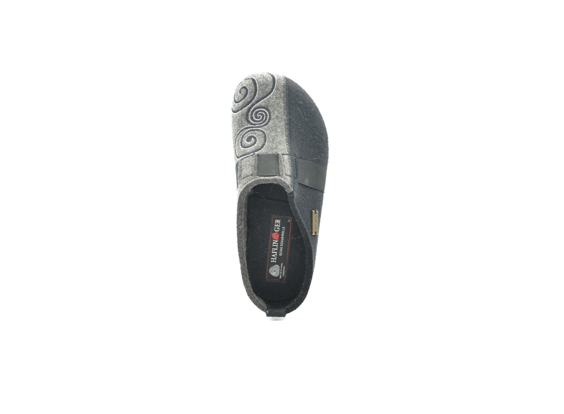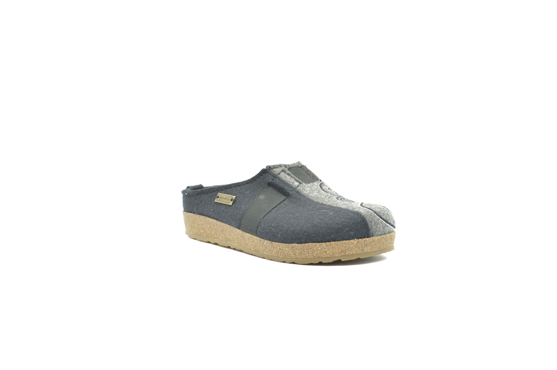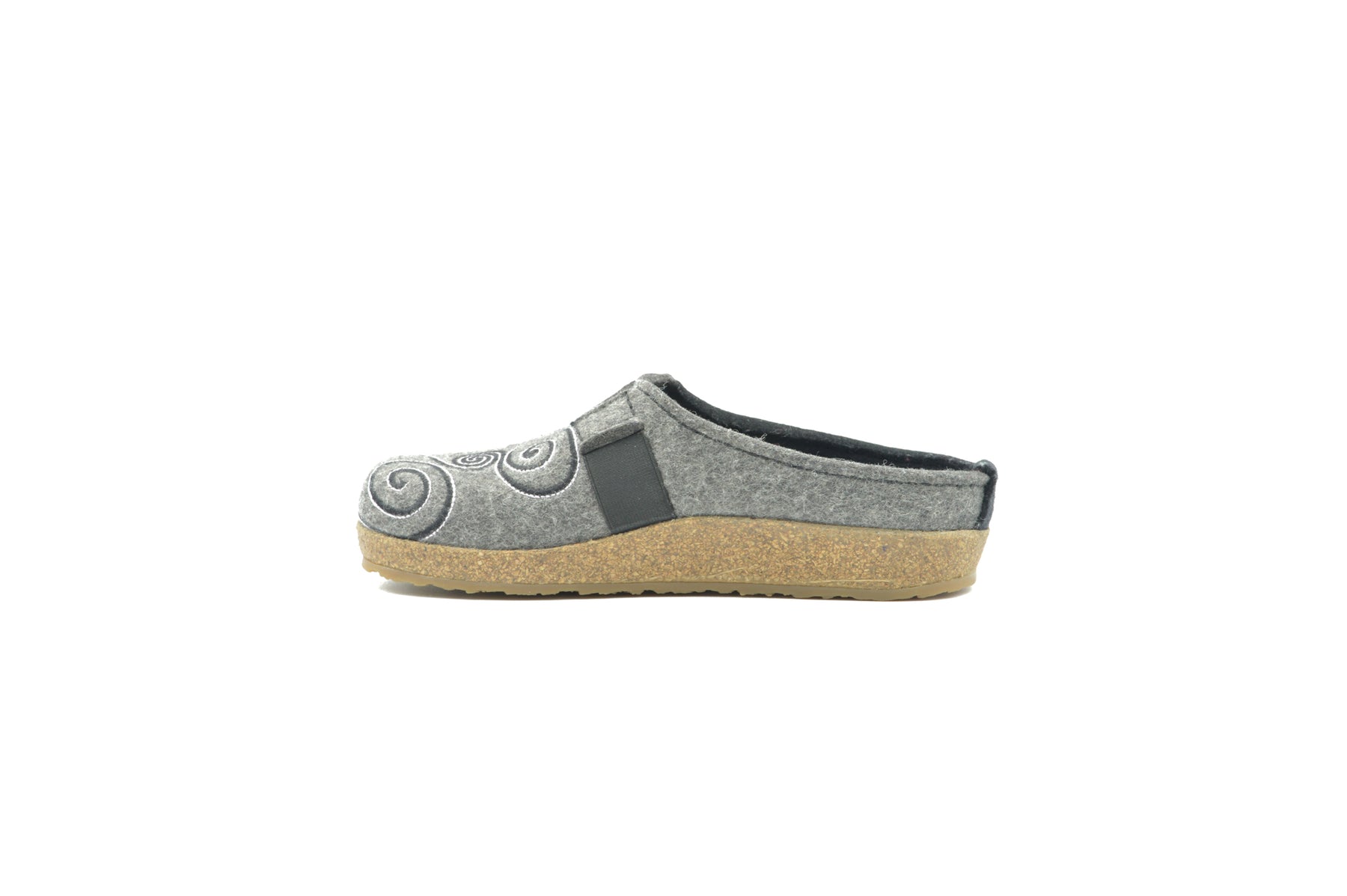 An elasticized strap perfects the fit of a breathable, felted-wool slipper finished with swirly stitches. The cork-and-latex midsole offers cushioned, anatomical support for exceptional comfort.