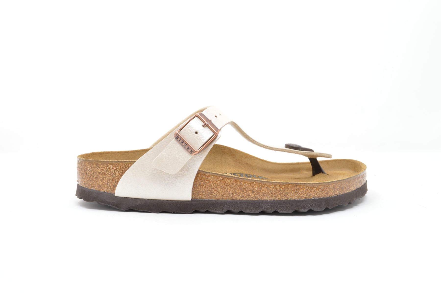 The BIRKENSTOCK Gizeh brings legendary comfort and elegant detailing to the thong sandal. A statement finish adds a special sheen to the everyday favorite. Complete with an original cork-latex footbed for all-day support.