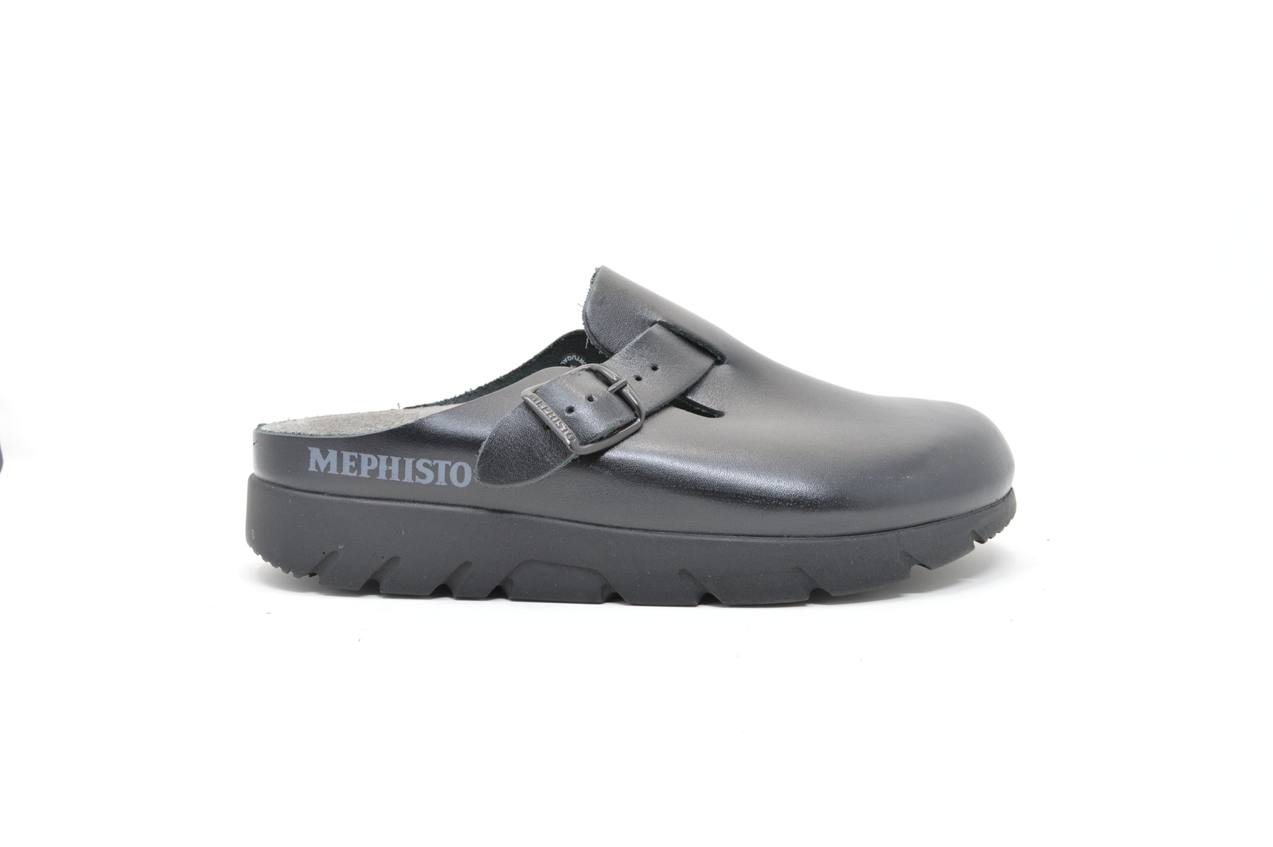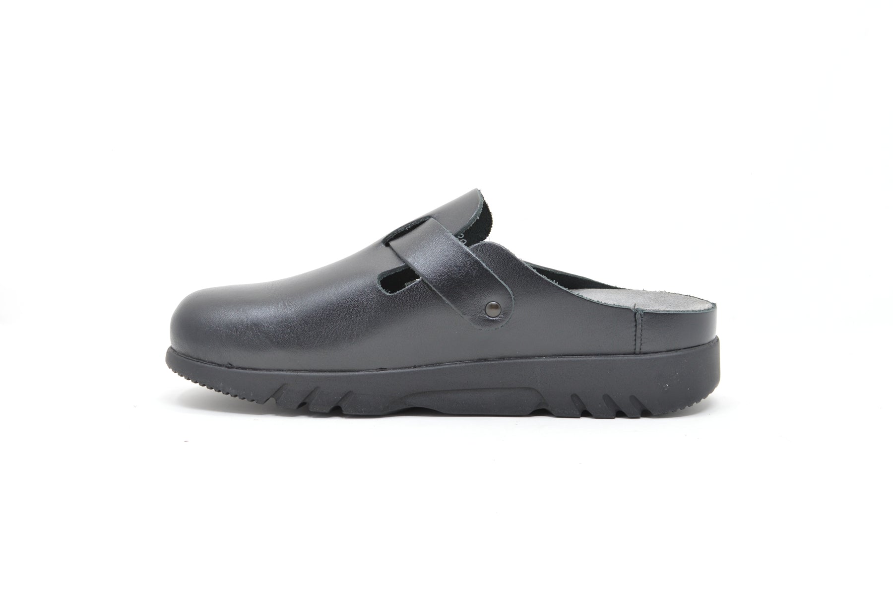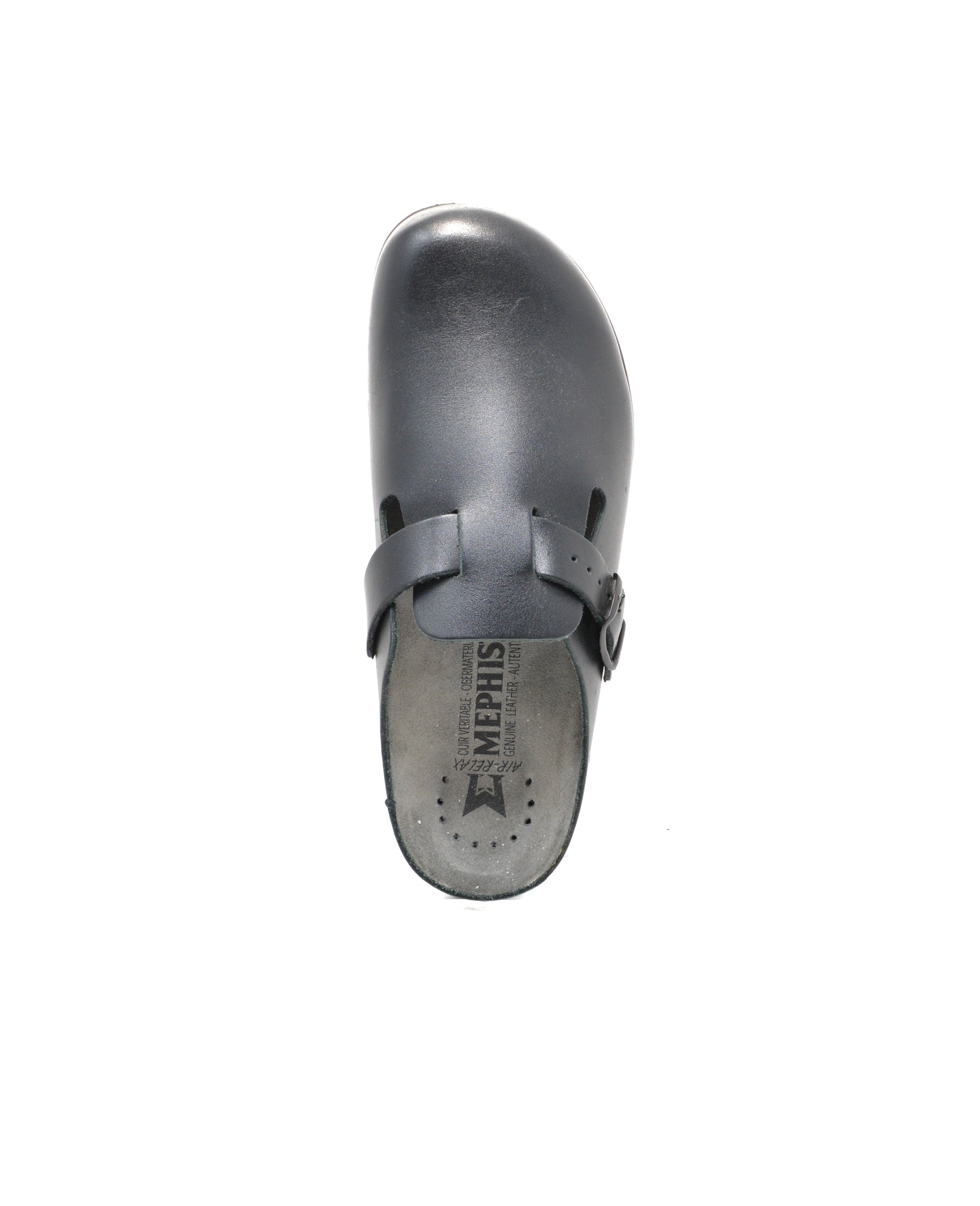 This practical, clog-style mule is made of smooth leather and features an adjustable strap with buckle closure for a secure custom fit. A rounded toe box provides ample room ensuring comfort. A suede covered cork and latex footbed enhanced with SOFT-AIR Technology provide optimal cushioning and shock-absorption for fatigue-free walking. A durable rubber sole with rocker bottom delivers enhanced shock-absorbing traction.