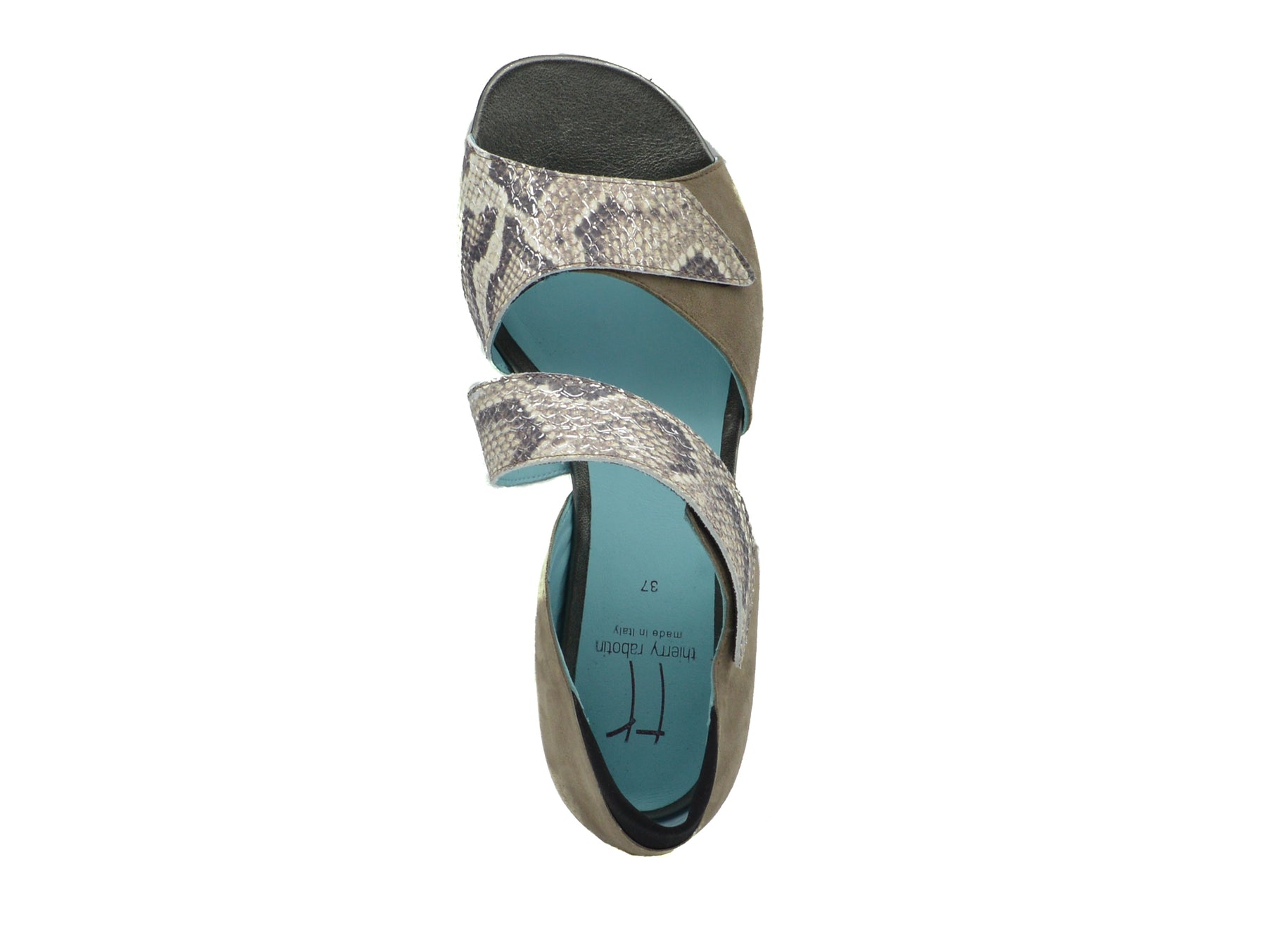 The Birbaa 2913 sandal from Thierry Rabotin is stylish. The style has black straps that velcro in place secure your foot. Poron Comfort cushioning throughout for a lightweight and incredible feel. With a flexible and thin rubber sole.